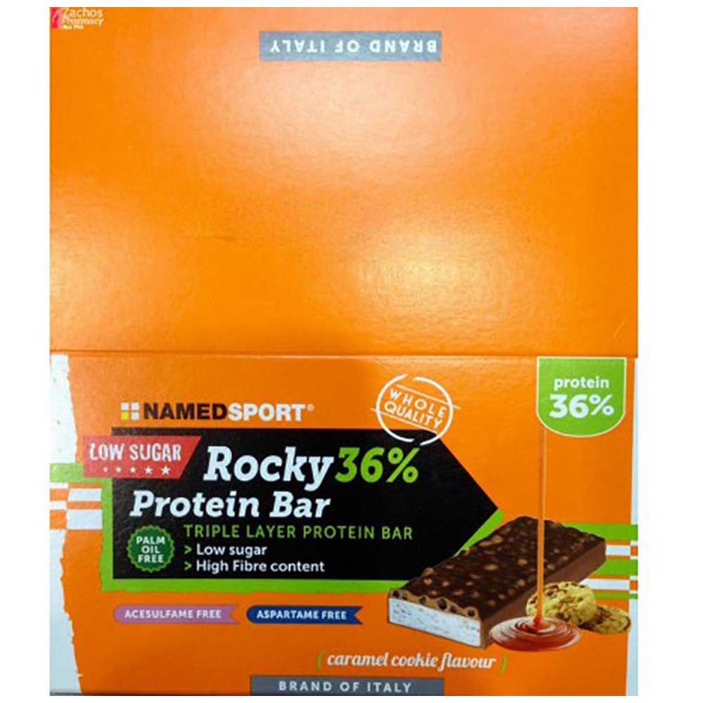 Named sport Proteína Rocky 36% 50g 12 Unidades Dobro Caramelo Biscoito Energia Barras Caixa