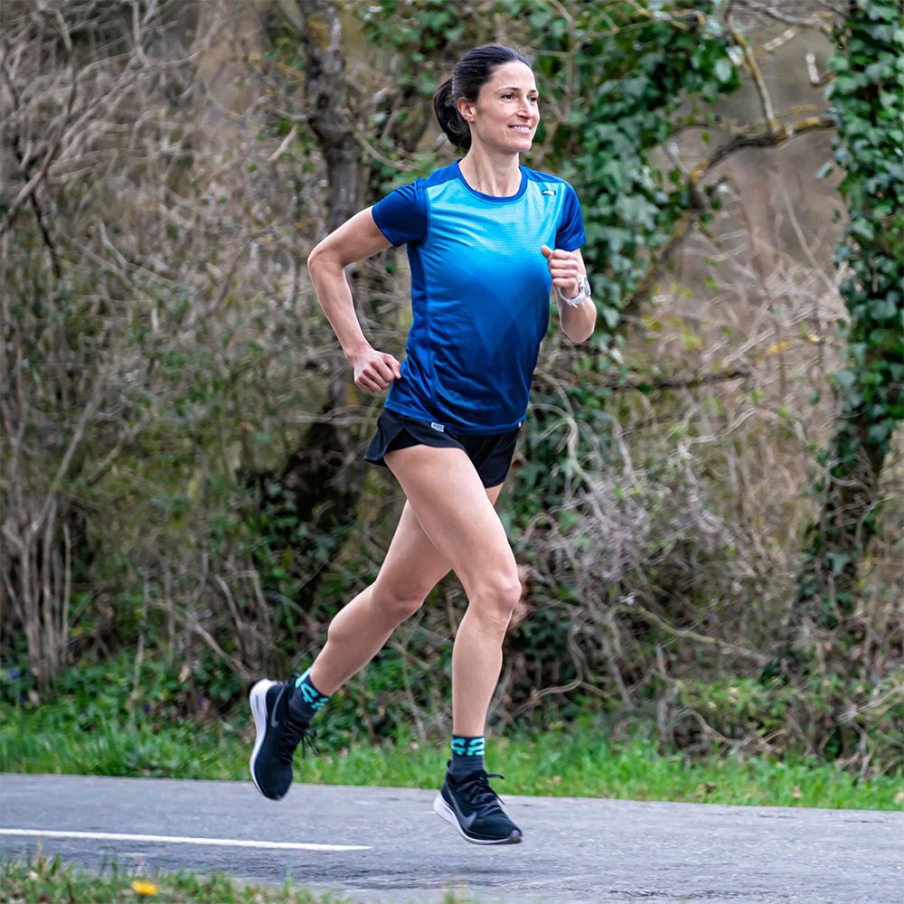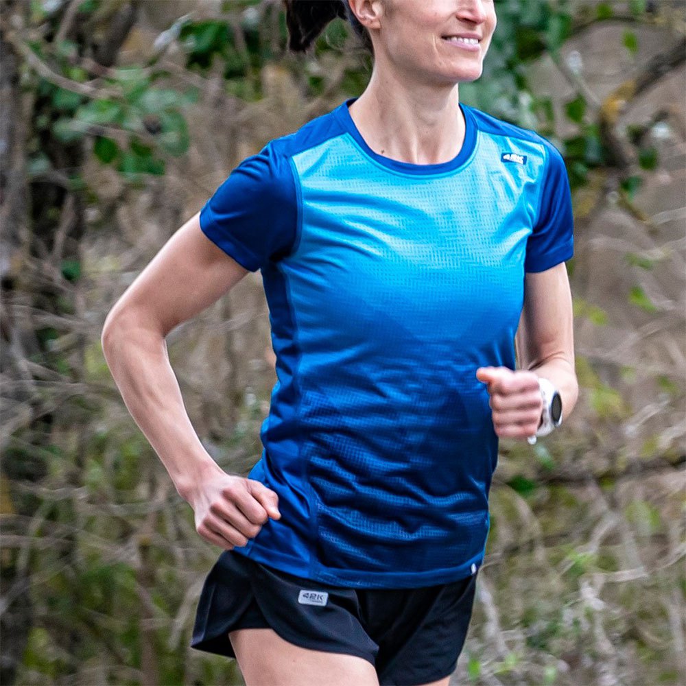 Camisa de corrida técnica para mulher confeccionada com o novo tecido INFINI_TECH.