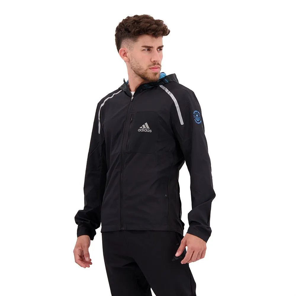 Esta jaqueta de maratona adidas cobre você em dias frios e úmidos.