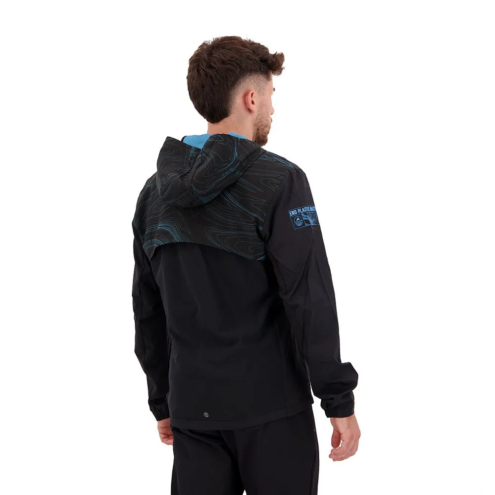 Esta jaqueta corta-vento é confeccionada com tecido ripstop de poliéster reciclado , que oferece máxima durabilidade, resistência ao desgaste, leveza, respirabilidade, secagem rápida e repelência à água. Seu forro de malha aumenta a absorção de umidade e ventilação no interior. Inclui um fecho integral, um capuz forrado, punhos semi-elásticos, uma bainha com cordão ajustável, bolsos laterais com botões de pressão e um bolso no peito com fecho. Seus detalhes refletivos tornam você visível em condições de pouca luz.