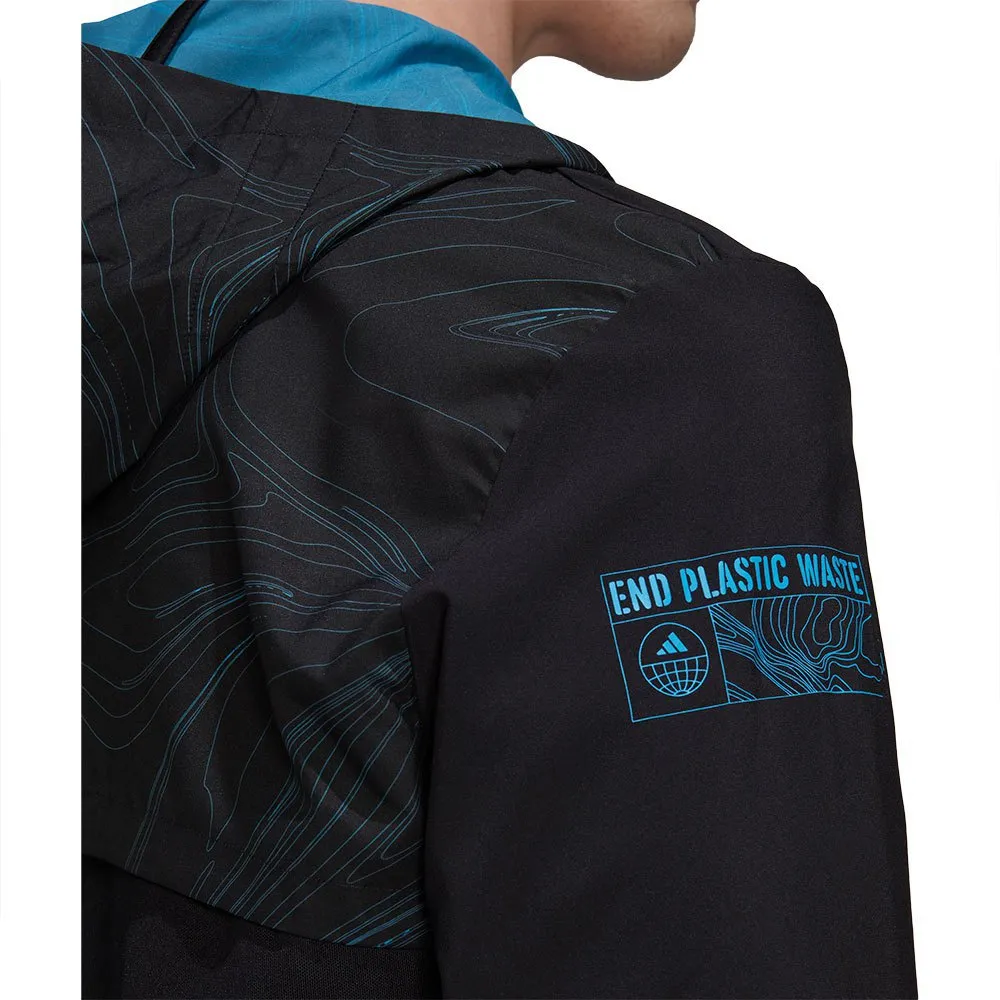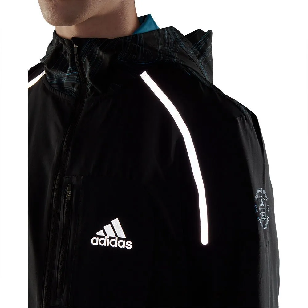 A Jaqueta Adidas Marathon For The Oceans foi projetada para os verdadeiros protetores do meio ambiente, pois possui um inovador bolso traseiro de malha que permite coletar os resíduos que você encontra no caminho e contribuir para espaços mais limpos e protegidos.