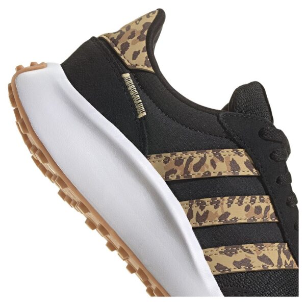 A aba do calcanhar e as Três Listras apresentam uma estampa de leopardo.