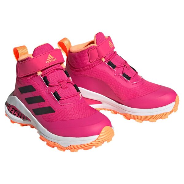Estes tênis de corrida adidas para crianças têm um cabedal forte em ripstop no topo de uma sola todo-o-terreno que permanece plantada em ruas lamacentas e lamacentas.