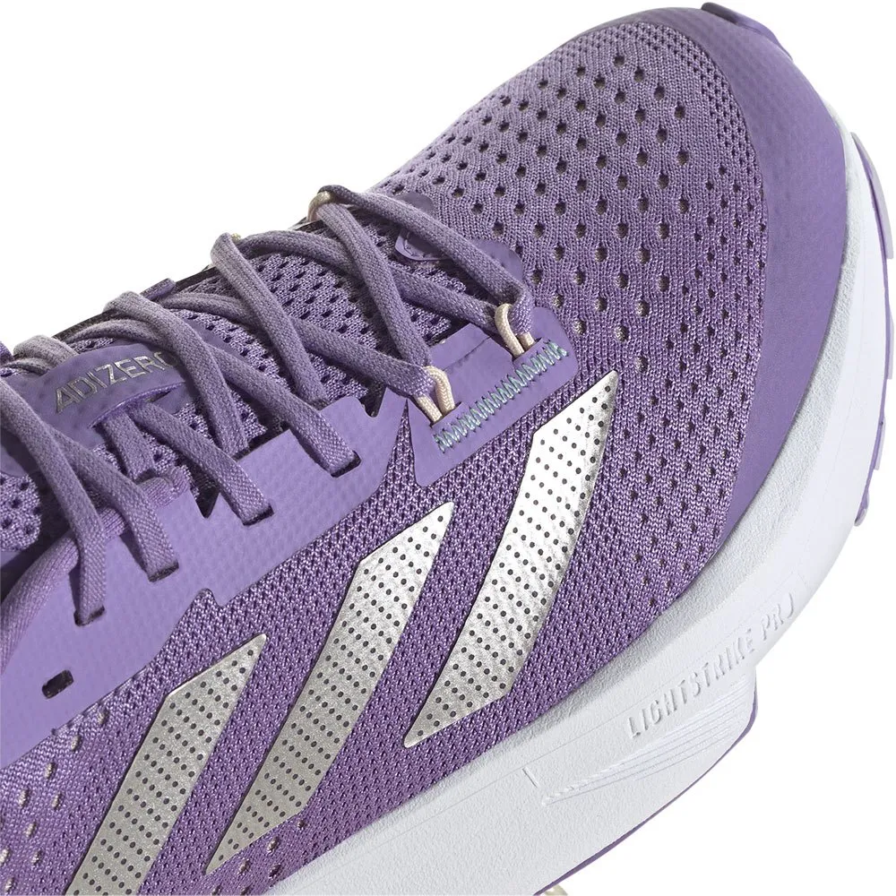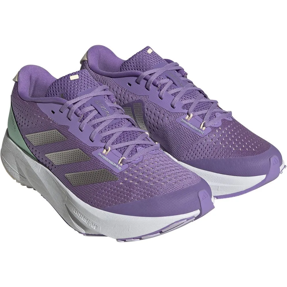 Uma construção de calcanhar e língua abertamente acolchoada, proporcionando maior conforto e conforto de passeio, juntamente com nosso sinal de pisca-pisca ADIZERO, completam a construção superior.