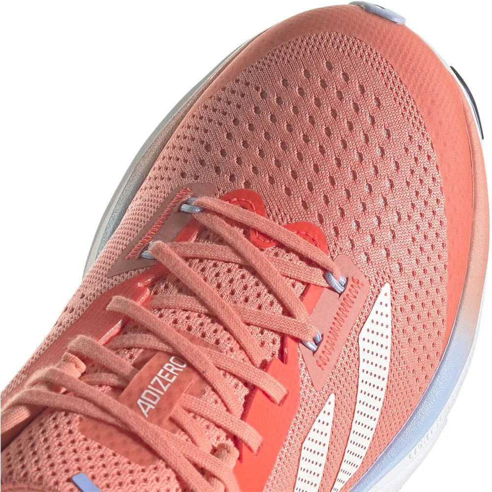 Uma construção de calcanhar e língua abertamente acolchoada, proporcionando maior conforto e conforto de passeio, juntamente com nosso sinal de pisca-pisca ADIZERO, completam a construção superior.