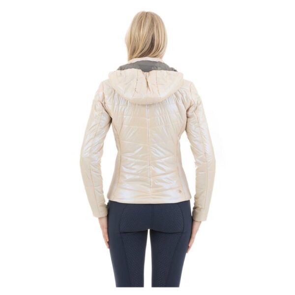Tecido de concha brilhante com painéis laterais esticados para conforto ideal.