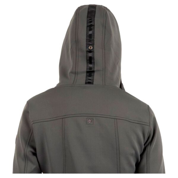 – Tecido respirável e absorvente para mantê-lo seco e confortável – Tecido elástico escovado por dentro – Zíper frontal com protetor de queixo e coletor de vento – Bolsos práticos com zíper – Capuz com botão de pressão para mantê-lo preso às costas – Capuz e costura lateral embelezada com escuro fita prateada – Punhos das mangas caneladas com pequenas listras pretas brilhantes