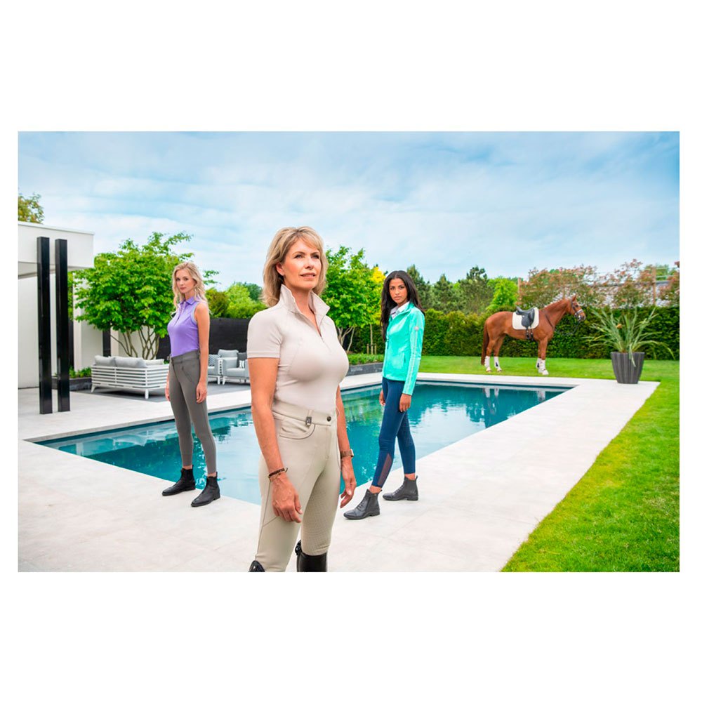 -Tecido elástico, respirável, de secagem rápida e regulador de humidade.