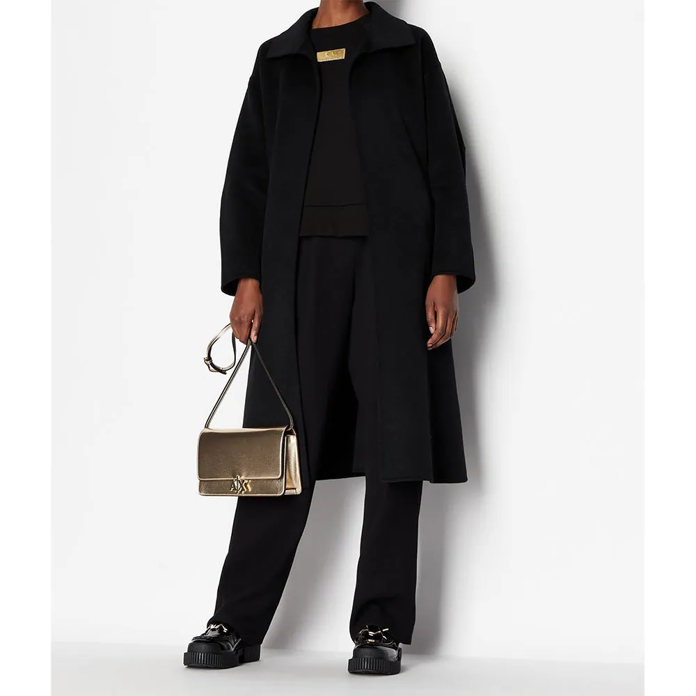 O design é definido por seus recursos modernos e funcionais. Um zíper frontal completo proeminente serve como o elemento de design central, proporcionando um ajuste seguro e à prova de vento, ao mesmo tempo em que adiciona uma estética contemporânea e ligeiramente ousada. Este uso prático de zíperes de alta qualidade ressalta o apelo moderno do casaco. Feito para mulheres, a silhueta é lisonjeira e versátil. Possui uma estrutura sofisticada que pode ser personalizada com o cinto incluído, permitindo que você aperte a cintura para um formato de ampulheta clássico e feminino ou use-o aberto para um perfil mais relaxado e reto. A sensação luxuosa do rico tecido de lã mista fala da qualidade e atenção aos detalhes inerentes à marca Armani Exchange. As mangas compridas fornecem cobertura e calor completos, culminando em um casaco tão prático quanto elegante.