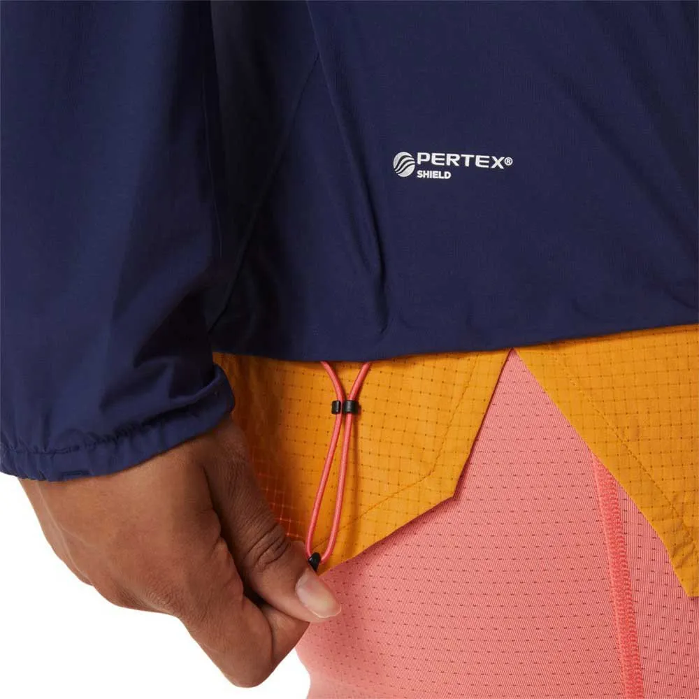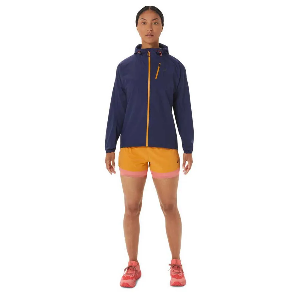 Fujitrail Waterproof Jacket é uma jaqueta Asics para mulheres , cuja estrutura inclui tecido Pertex de duas camadas, material impermeável e costuras seladas que mantêm a umidade longe de sua pele.