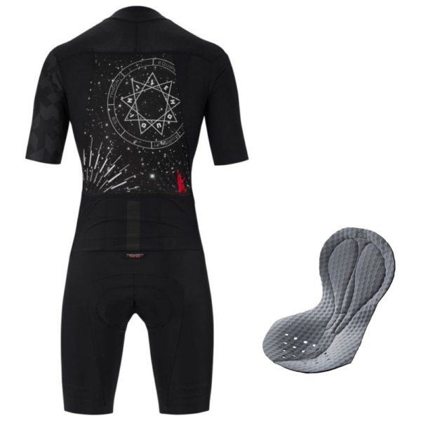 Seu corte exclusivo e o uso de 5 tecidos diferentes reduzem o arrasto e a absorção de umidade, melhorando a aerodinâmica e reduzindo o peso. O conforto é aprimorado ainda mais pelo pad EQUIPE S9 Sundeck, que combina absorção de choque e estabilidade com fluxo de ar de resfriamento multidirecional. As pinças de perna adicionais skinGrip Finish mantêm as pernas da calça no lugar sem pressão excessiva.