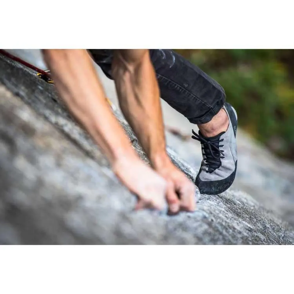 Graças à excepcional língua com tecnologia de malha projetada, que é super respirável e oferece grande estabilidade, flexibilidade e conforto durante o abuso na montanha e escalada. Além disso, a sola minimalista permite que o sapato penetre no solo criando uma boa fricção e aderência contra as rochas molhadas enquanto você está correndo em trilha ou escalando montanhas. Este é um calçado ideal para enganchar no calcanhar, expedições de escalada, pois a proteção do dedo do pé Black Label Mountain Rubber proporciona grande adaptabilidade, proteção e posicionamento estável . Graças às tiras de velcro que o tornam mais fácil de usar e fornecem estrutura enquanto você está na farra de exploração.