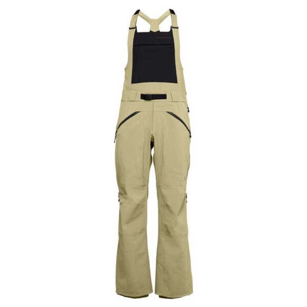– Painéis de peito e costas da calça com tecido de nylon de dupla trama com elasticidade DWR