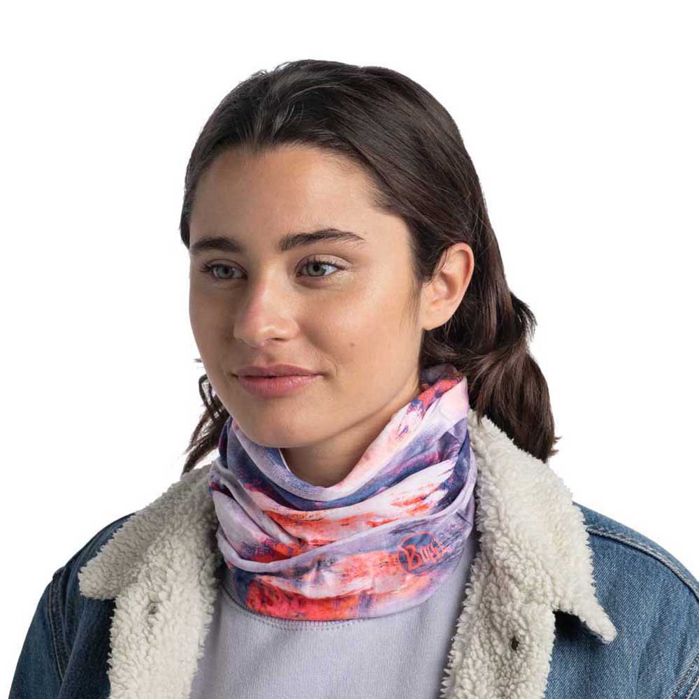 Feito de garrafas plásticas recicladas, oferece proteção solar UPF50 e pode ser usado de mais de 12 maneiras diferentes.