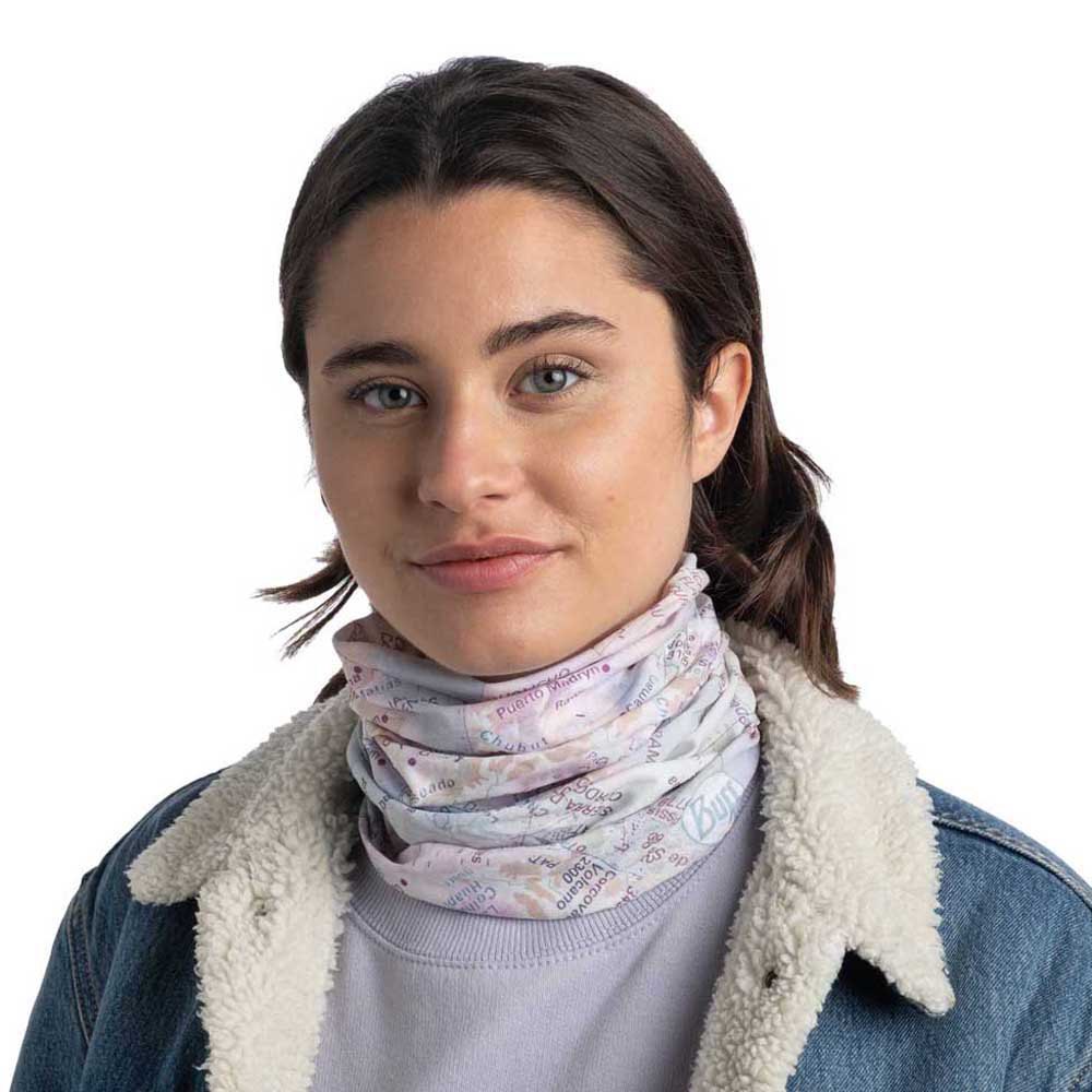 Feito de garrafas plásticas recicladas, oferece proteção solar UPF50 e pode ser usado de mais de 12 maneiras diferentes.