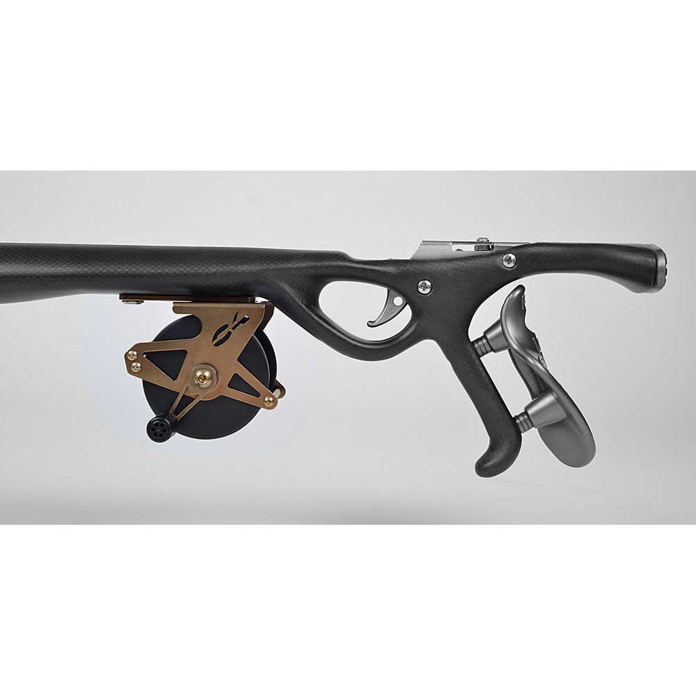 É um arpão hidrodinâmico com um cano rígido para um tiro muito preciso e estável.
