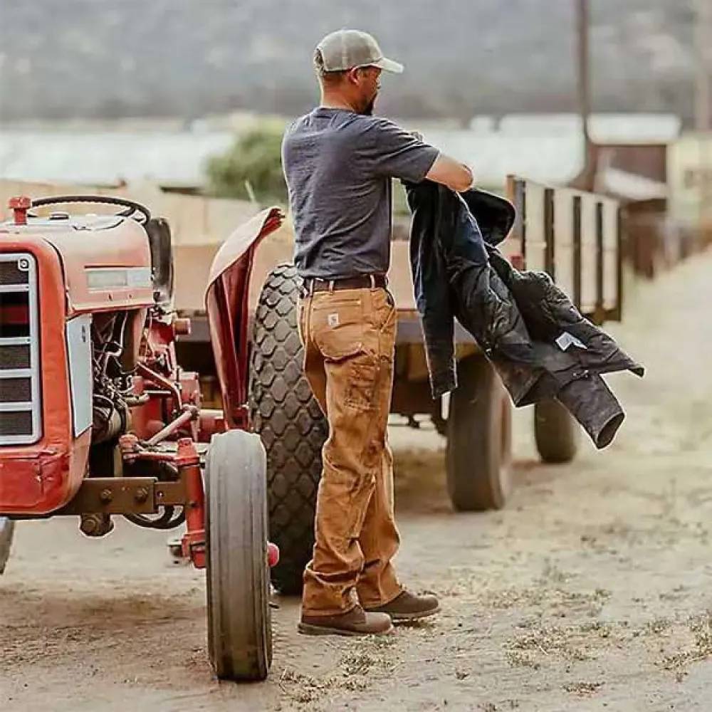 Ajuste solto: nosso ajuste mais generoso com um assento completo e coxa e perna reta para mantê-lo confortável. Cintura média ligeiramente abaixo da cintura natural, assento e coxa soltos, abertura larga da perna ajuste sobre botas de trabalho