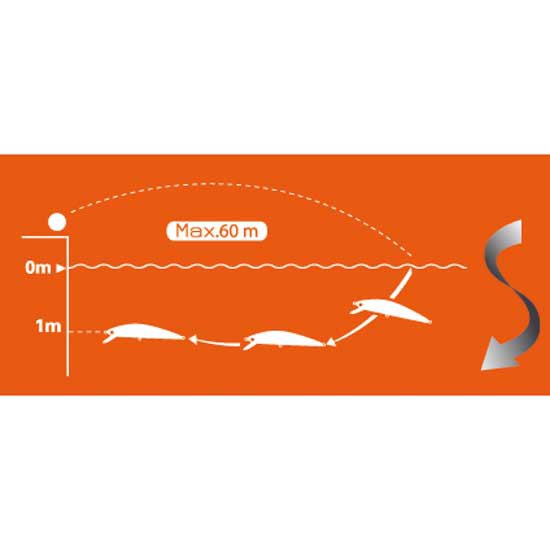 A atração do tipo afundamento de peixinho que permite ser lançada a longas distâncias se destaca por sua ação marcada em “S”. Incorpora um chocalho interno que atrairá predadores. Especificações: Peso: 51g