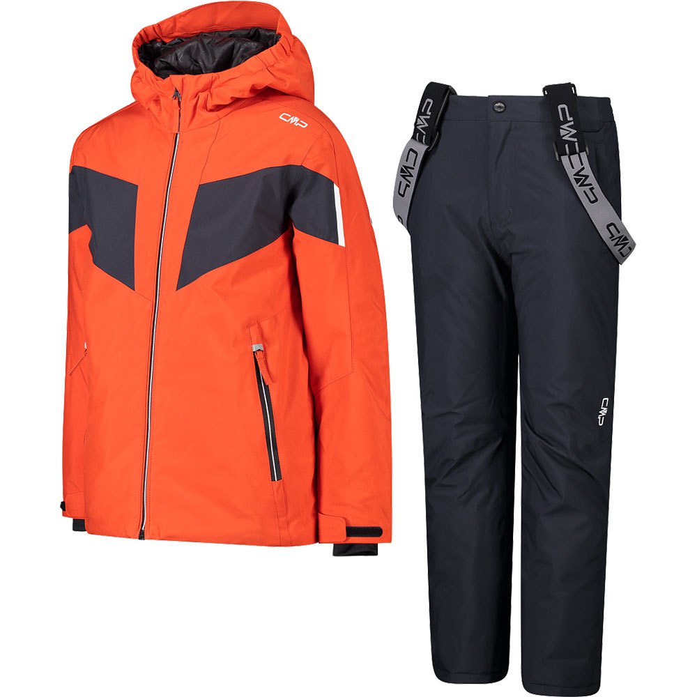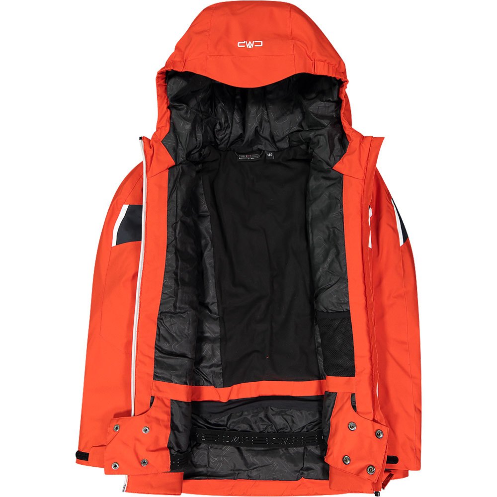 O conjunto é completado com costuras parcialmente coladas, bainha com cordão ajustável, punhos internos de Lycra com abertura para o polegar, polaina interna de neve e bolso para Skipass na manga.