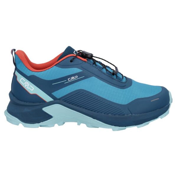 A sola é de borracha CMP FullOnGrip, garantindo aderência, tração e durabilidade, com entalhes profundos e formato que permite aderência multidirecional, para melhor tração em superfícies macias como lama ou terra solta.