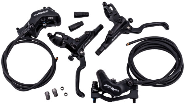 Uma generosa abertura superior permite a substituição fácil das almofadas e também permite almofadas com aletas de resfriamento. As alavancas de freio ergonômicas e texturizadas com braçadeira compatível com I-Spec II fornecem controle seguro e um guidão organizado. Na nova geração, o freio também possui um ajuste de largura de aperto sem ferramentas. Um fecho banjo garante o alinhamento ideal da linha de transporte de óleo mineral.