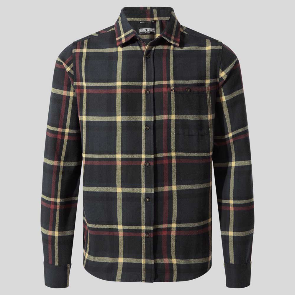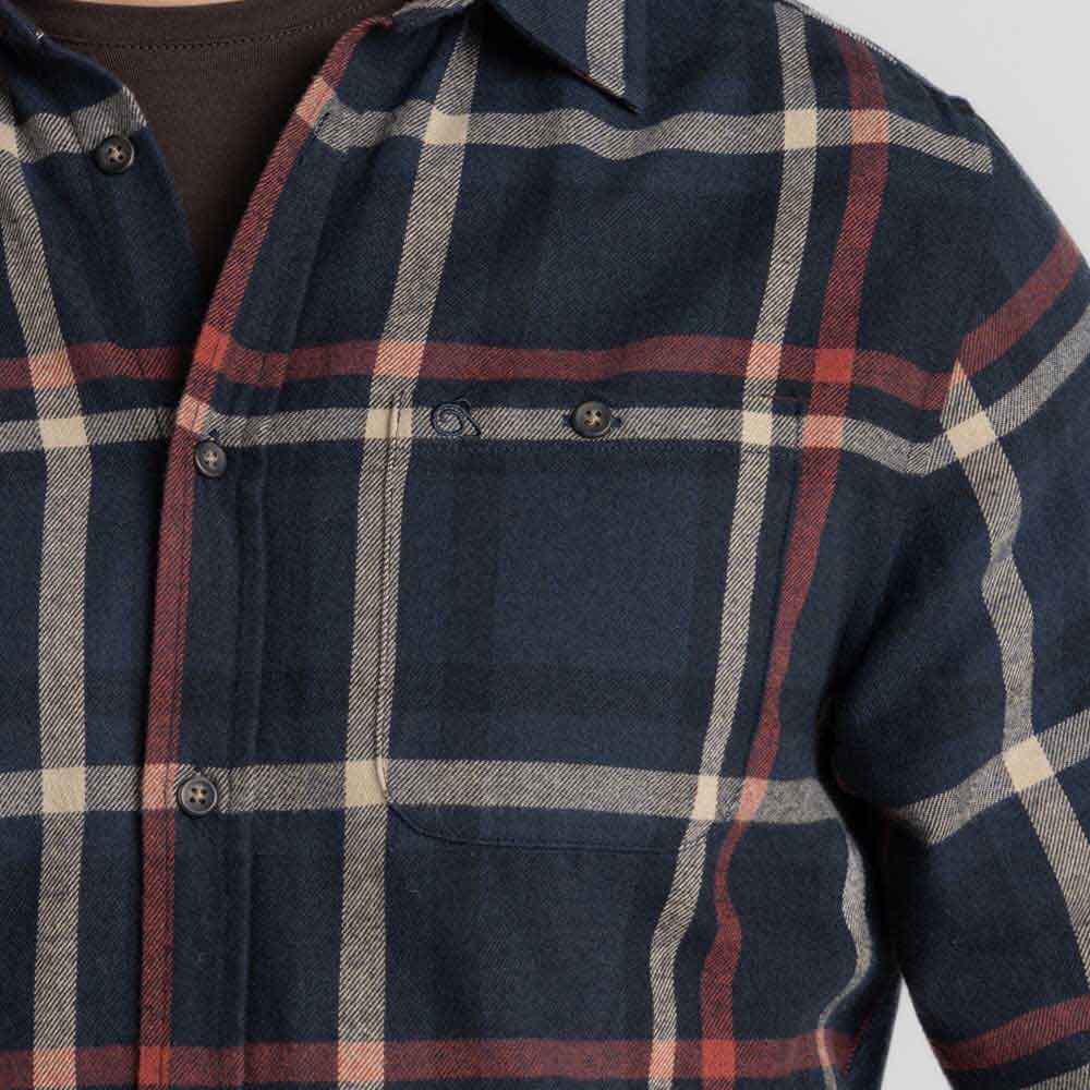 Clássica camisa de inverno de herança feita de um tecido de mistura de poliéster e algodão com uma estampa xadrez impressionante com bolso no peito.