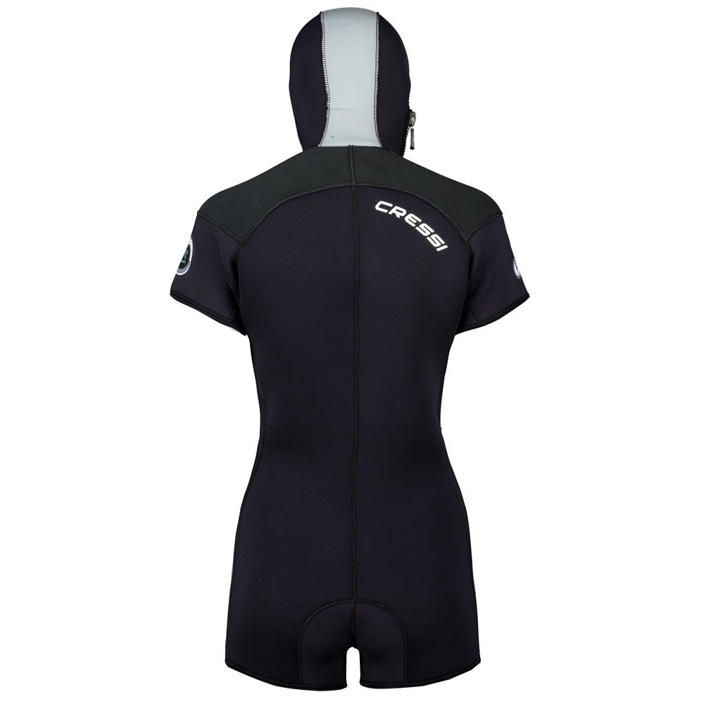 Casaco de 5 mm com capuz, shorts e mangas curtas, pode ser usado em qualquer modelo de traje modular Cressi: Castoro, Comfort, Fast. Neoprene com revestimento Ultraspan de alta elasticidade em todos os sentidos. Fecho de correr dianteiro YKK 8 passo. Cor cinza preto, combinável com qualquer versão.