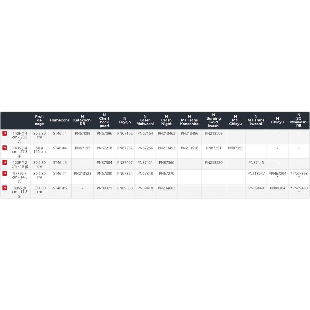 Este peixinho flutuante (120 cm) corresponde ao tamanho mais comum de atração usado para baixo. Seu centro de gravidade estável permite otimizar a distância do elenco. Ele possui um sistema patenteado Silent Weight Oscillating Plus, que muda o centro de gravidade no elenco ou na recuperação, liberando um peso ao longo de um eixo de aço inoxidável. Esse movimento é totalmente silencioso, graças à tecnologia HGS, que mantém o chumbo de tungstênio no local de recuperação, para não assustar os graves próximos. Profundidade do mergulho: 30 a 120cm. Ganchos: Proprietário ST 46 # 5