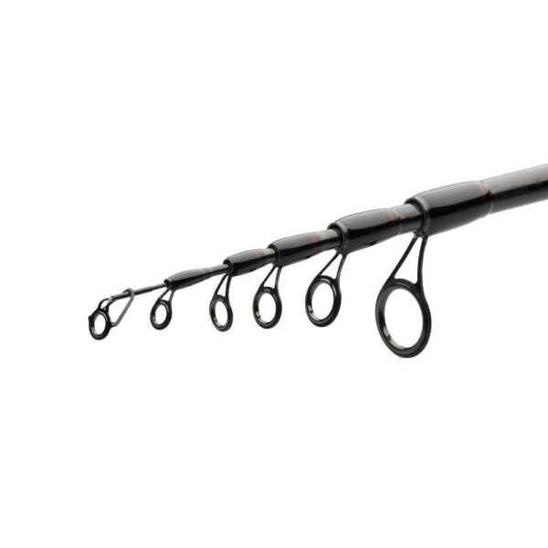 The Dam Shadow Tele Rods convencem não só com sua placa de carbono 24tc muito fina, leve e rápida e o uso de componentes de alta qualidade, mas também com seu design moderno e atemporal. As Shadow Tele Rods são equipadas com guias envoltos leves, mas resistentes, o que significa que a ação é muito mais rápida do que com anéis de haste telescópicos convencionais. As hastes são muito boas e equilibradas na mão e a interação do Camo Eva Fore Grip com o cabo de cortiça clássico torna as hastes um verdadeiro apanhador de olhos. A ação semiparabólica amortece cabeçadas e fugas rápidas, mas ainda oferece reservas de energia suficientes para desembarcar até peixes importantes com segurança.