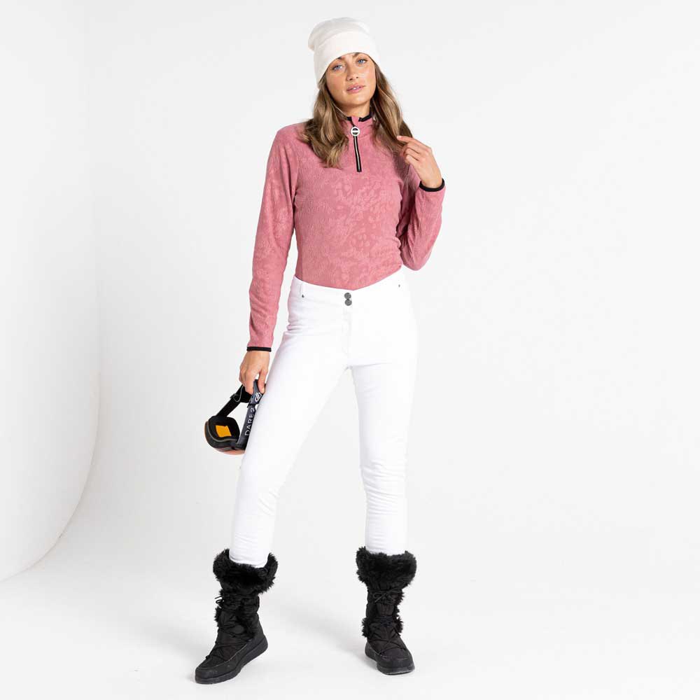 A calça leve e elegante. Feito com tecido de apoio quente altamente impermeável e respirável para mantê-lo super quente e aconchegante. Protege contra vento, chuva e neve. Perna afunilada super elástica com pregas pintuck para um ajuste lisonjeiro e embelezada com cristais para o fecho de pressão para um toque de luxo. Este produto reciclou 12 garrafas plásticas.