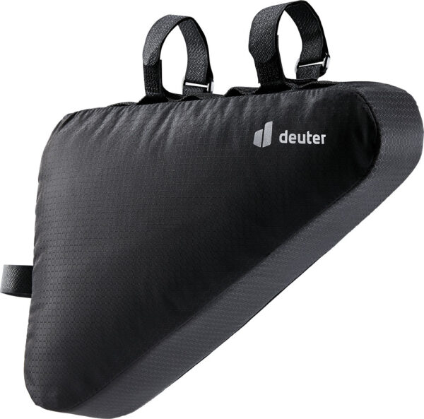 Uma bolsa Deuter Triangle Bag 2.2 feita de material resistente que oferece espaço para ferramentas, câmaras de ar sobressalentes e kit de primeiros socorros. Ele é preso com segurança a todos os tipos de quadros de bicicleta com seus três acessórios de tira de velcro e reforços flexíveis.