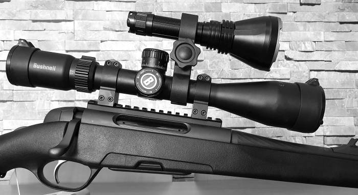 Este pacote foi projetado para poder instalar facilmente a Lanterna Fénix HT18R, que é especialmente projetada para caça devido à longa distância que seu feixe de luz alcança (1100 metros), e a opção de implementar facilmente um filtro de cores vermelho e verde incluído, para não ser visto e não revelar nossa presença.