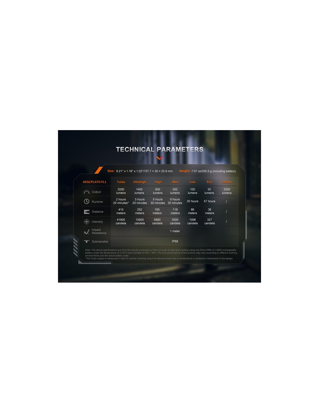 - 3200 lúmens de potência máxima e 410 metros de distância máxima do feixe de luz.