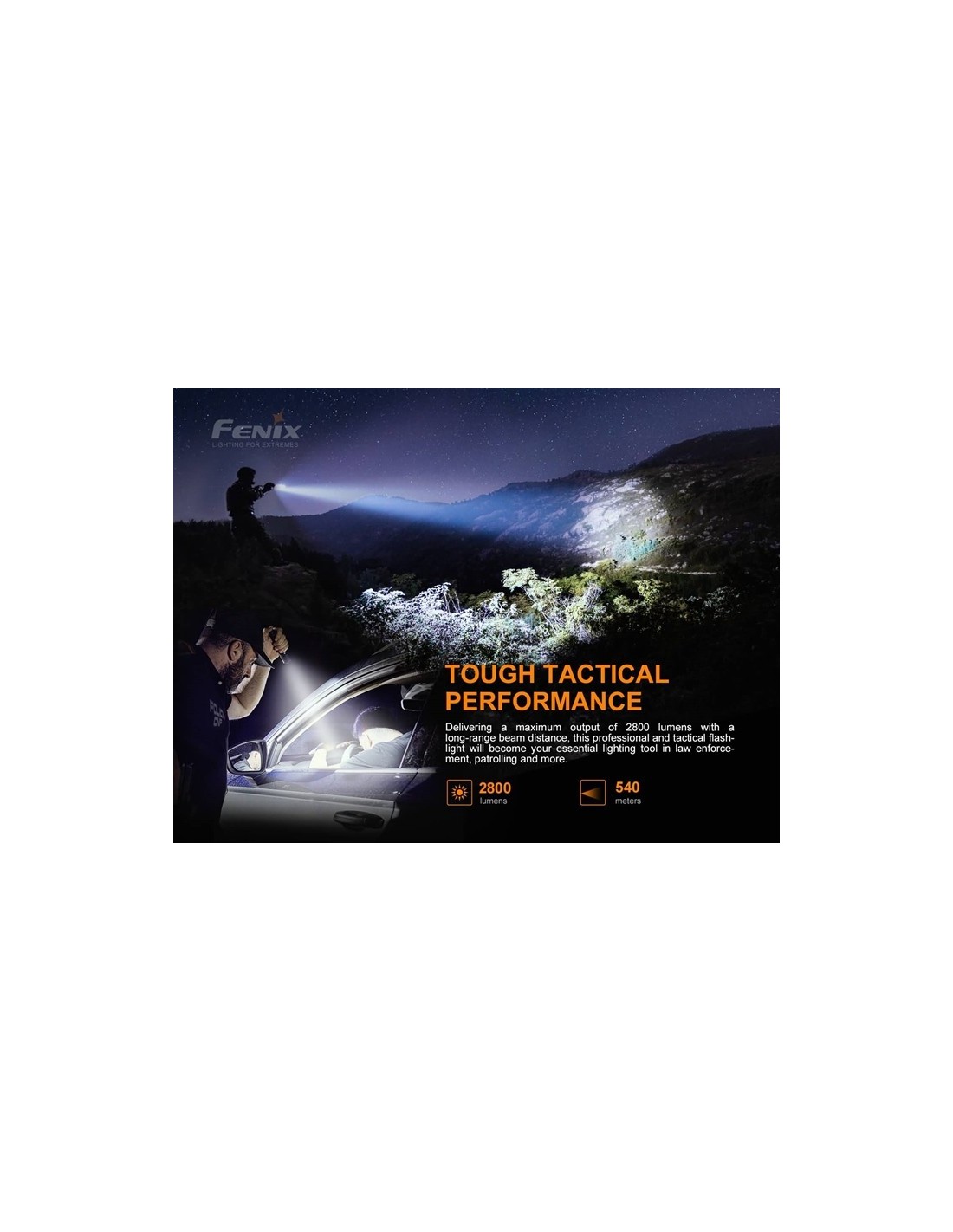 - Saída máxima de 2800 lúmens; Distância máxima do feixe de 540 metros.