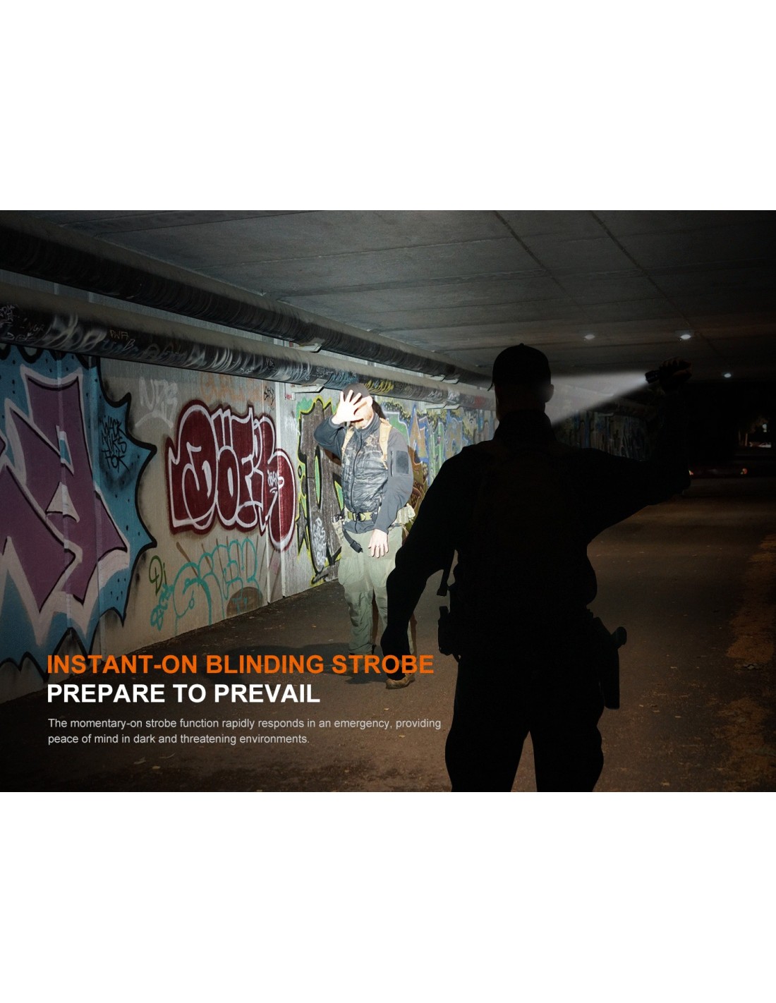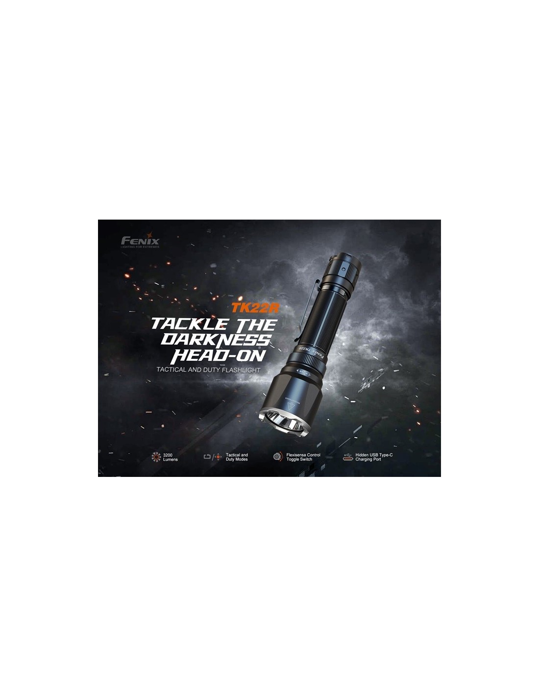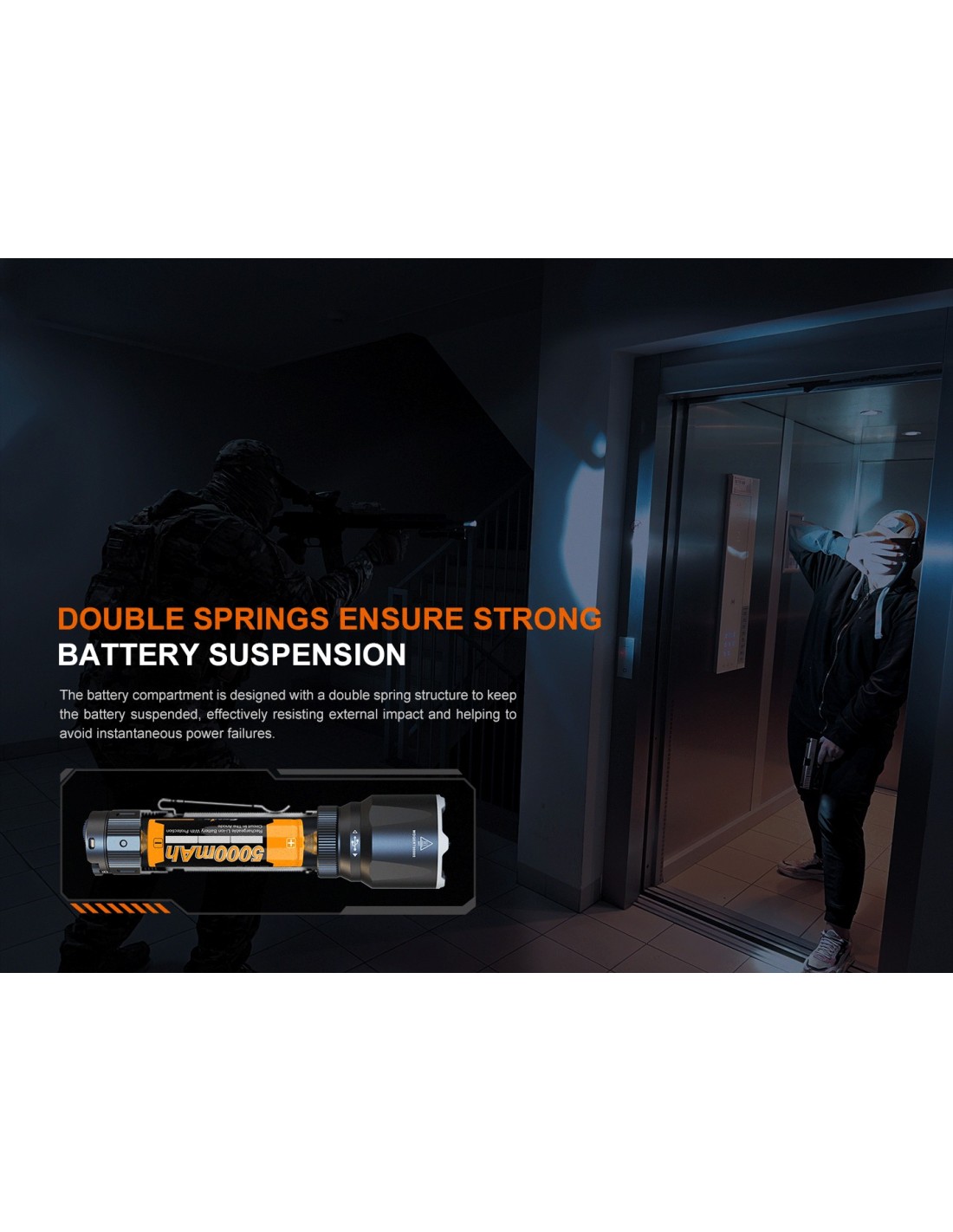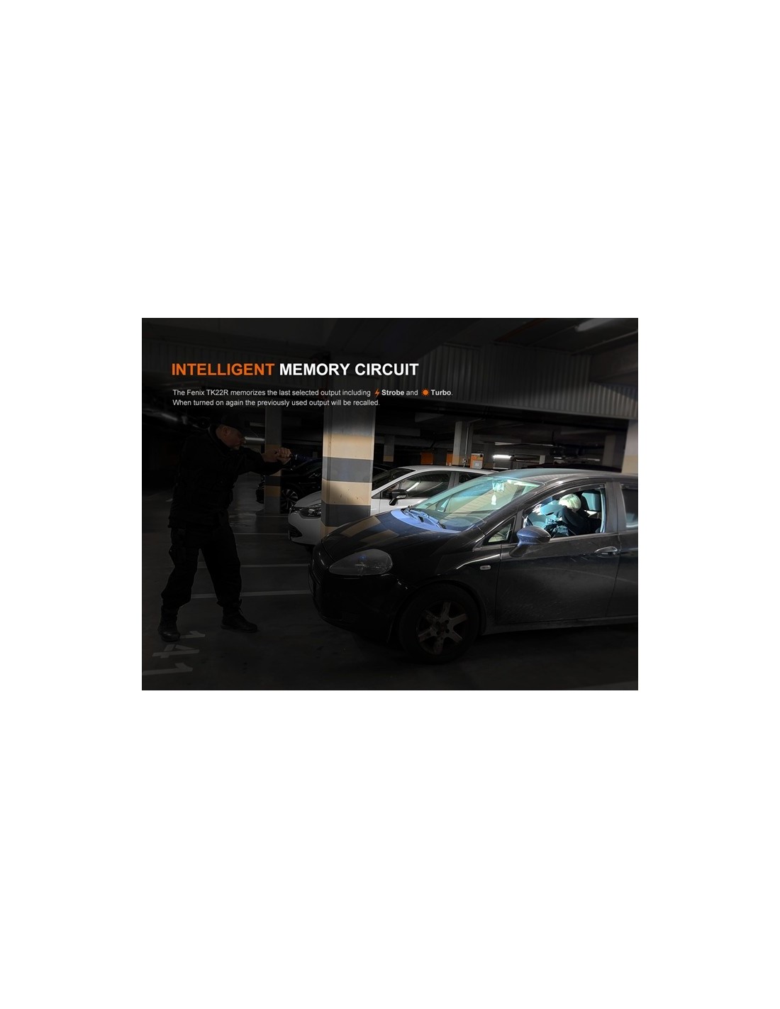 A nova lanterna tática e de serviço Fenix TK22R se destaca em desempenho e uso tático. Alimentada por uma única bateria de alta capacidade de 5000mAh, a lanterna oferece uma potência máxima de 3200 lúmens e um alcance máximo do feixe de 480 metros. Opere a lanterna de forma rápida e fácil para ligar/desligar ou selecionar os modos desejados usando o controle FlexiSensa patenteado e o interruptor tático de dupla função. O modo Desligado/Bloqueado pode evitar a ativação acidental. Um corpo compacto com aro de aço inoxidável e três esferas de carboneto de tungstênio embutidas são o design perfeito para aplicação da lei, segurança e defesa.