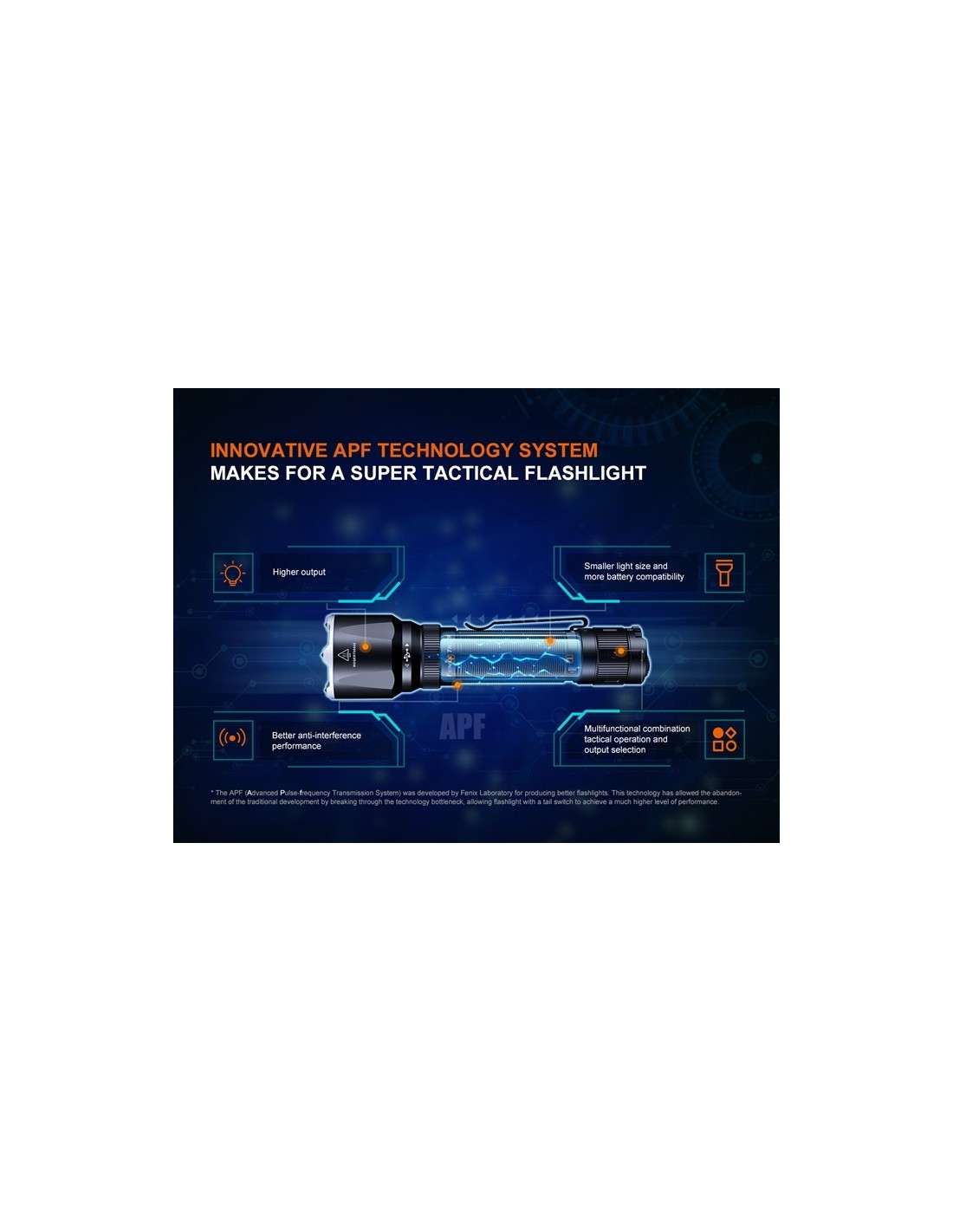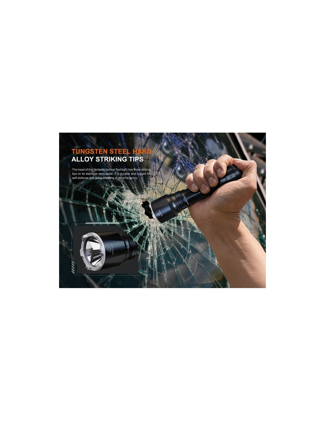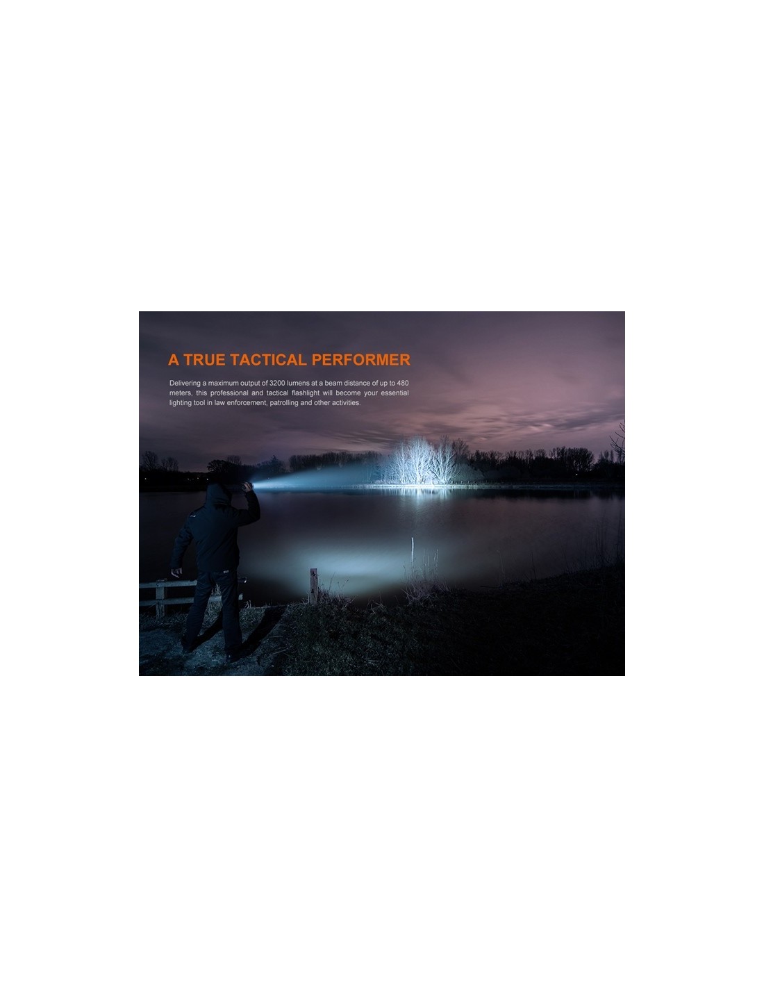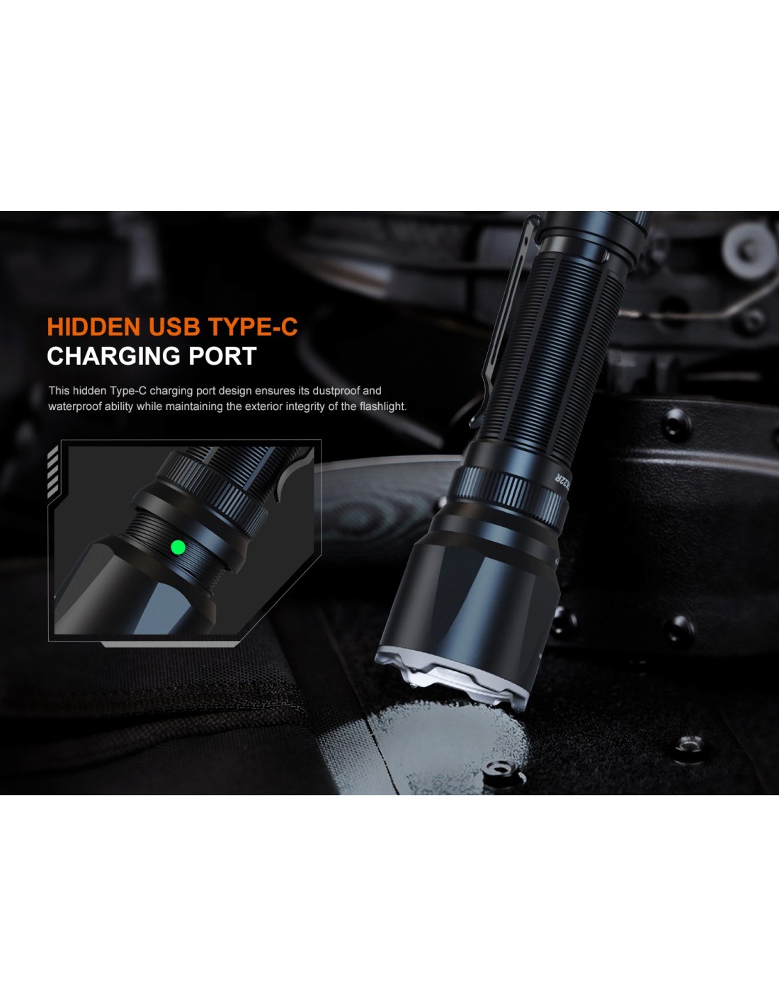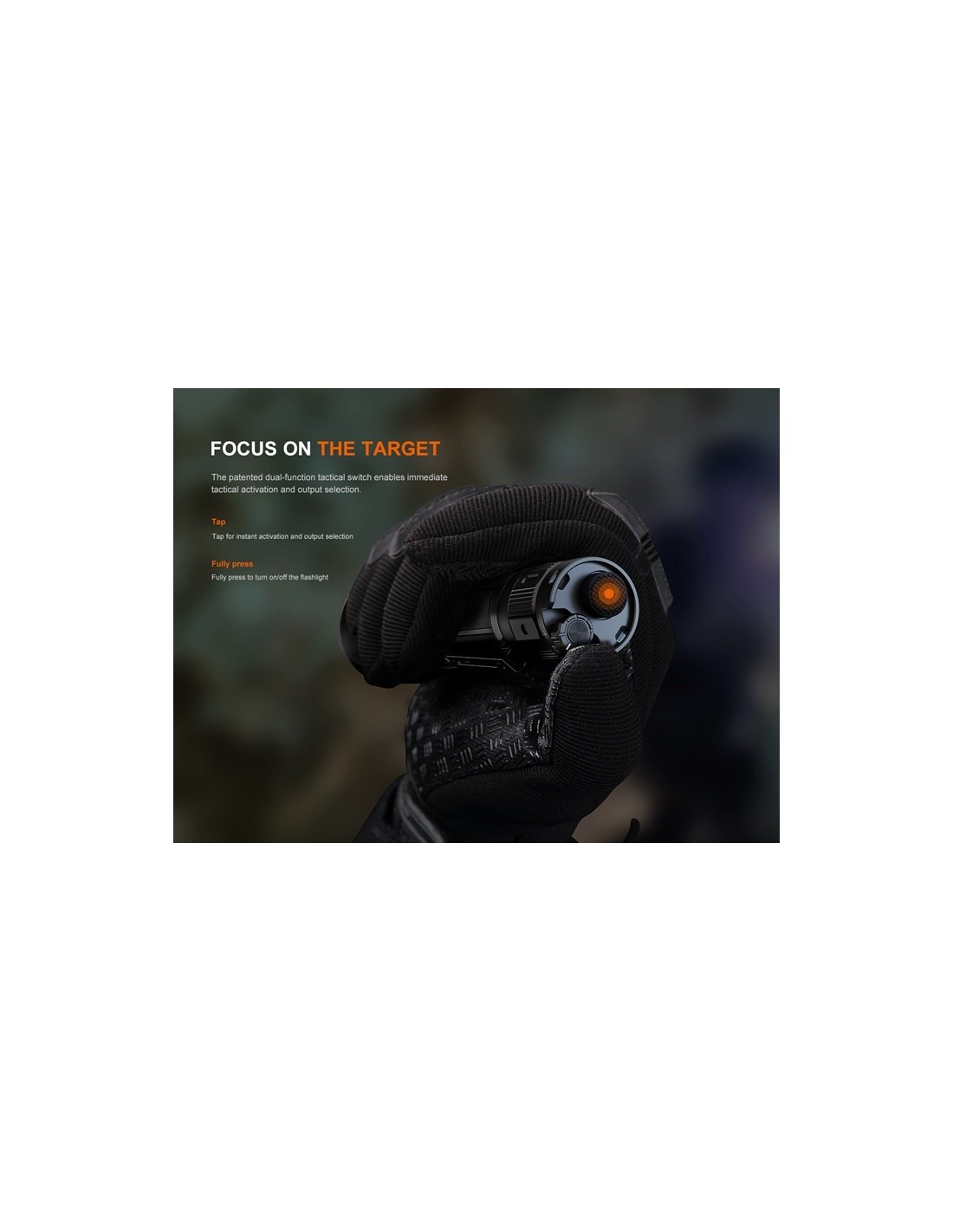 A nova lanterna tática e de serviço Fenix TK22R se destaca em desempenho e uso tático. Alimentada por uma única bateria de alta capacidade de 5000mAh, a lanterna oferece uma potência máxima de 3200 lúmens e um alcance máximo do feixe de 480 metros. Opere a lanterna de forma rápida e fácil para ligar/desligar ou selecionar os modos desejados usando o controle FlexiSensa patenteado e o interruptor tático de dupla função. O modo Desligado/Bloqueado pode evitar a ativação acidental. Um corpo compacto com aro de aço inoxidável e três esferas de carboneto de tungstênio embutidas são o design perfeito para aplicação da lei, segurança e defesa.