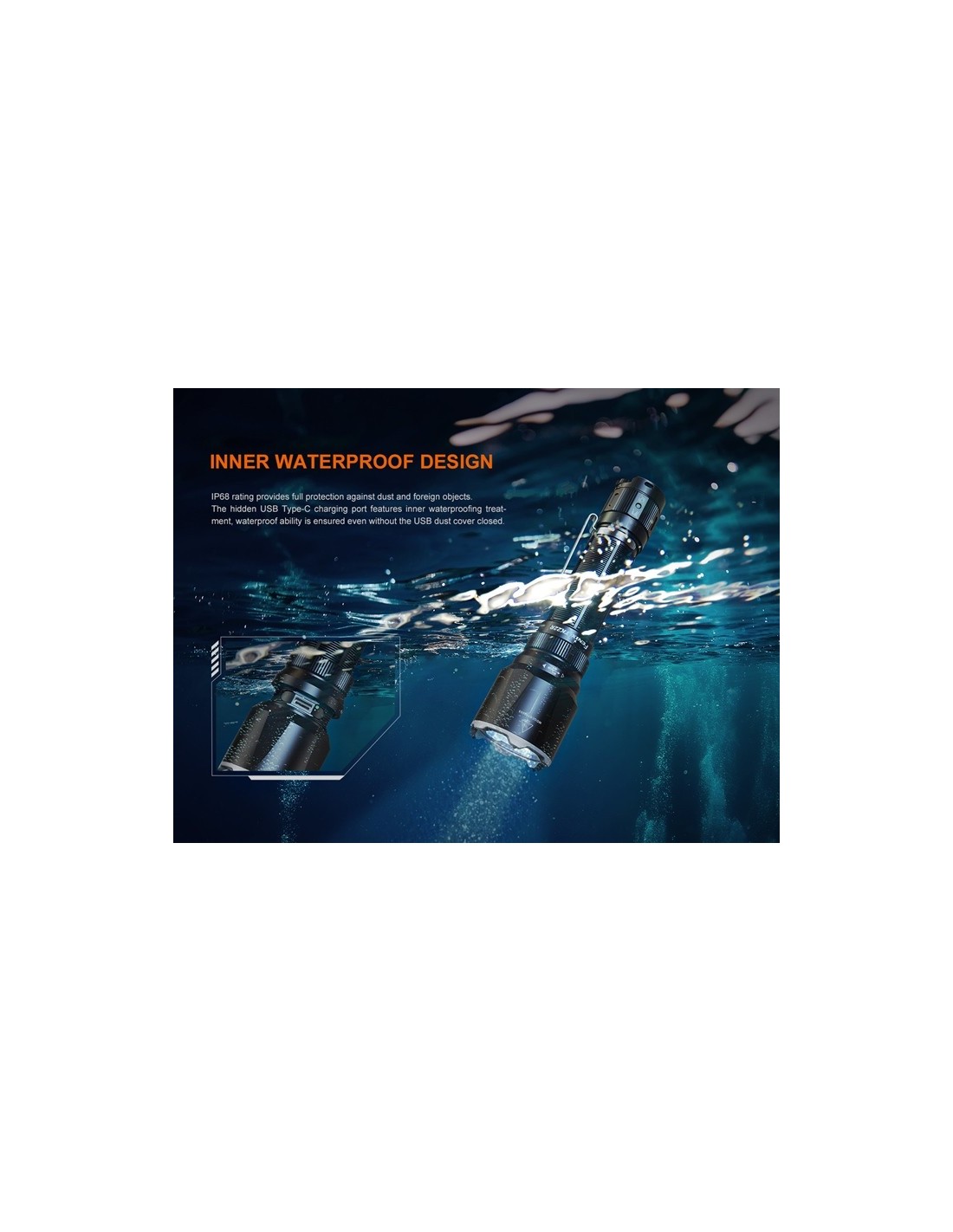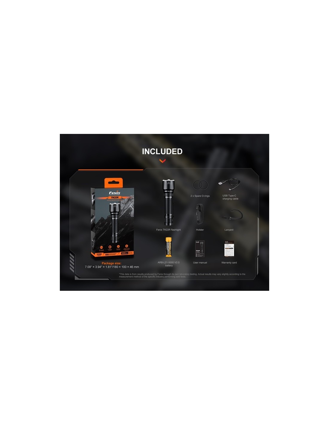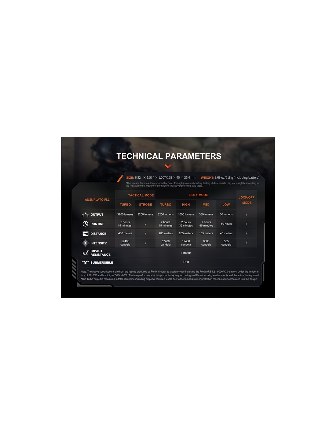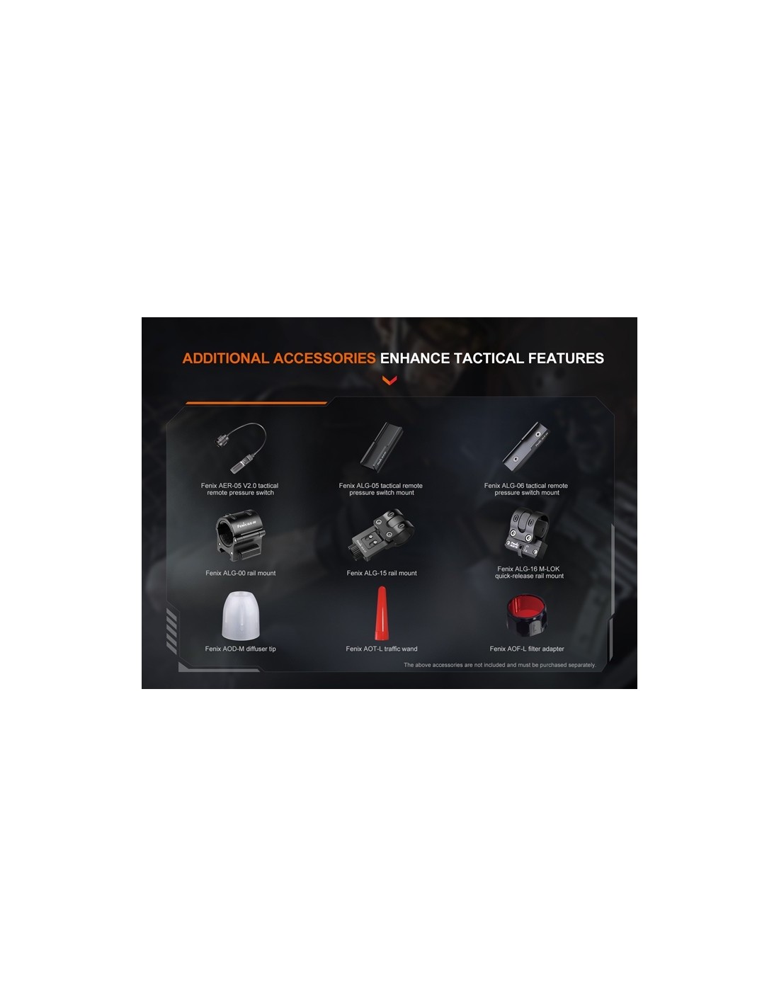 A nova lanterna tática e de serviço Fenix TK22R se destaca em desempenho e uso tático. Alimentada por uma única bateria de alta capacidade de 5000mAh, a lanterna oferece uma potência máxima de 3200 lúmens e um alcance máximo do feixe de 480 metros. Opere a lanterna de forma rápida e fácil para ligar/desligar ou selecionar os modos desejados usando o controle FlexiSensa patenteado e o interruptor tático de dupla função. O modo Desligado/Bloqueado pode evitar a ativação acidental. Um corpo compacto com aro de aço inoxidável e três esferas de carboneto de tungstênio embutidas são o design perfeito para aplicação da lei, segurança e defesa.