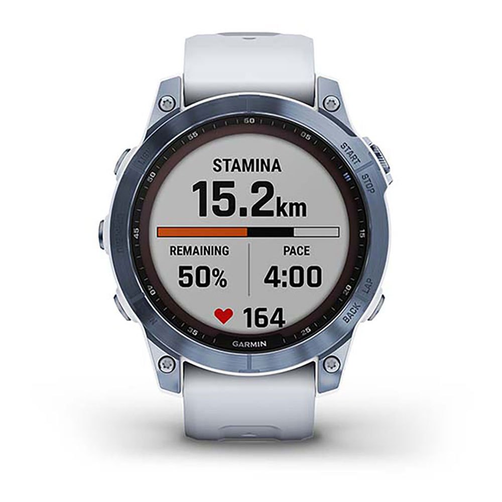 Desfrute de até 18 dias de duração da bateria no modo smartwatch, que pode ser estendido por mais 4 dias com carregamento solar 3 e 57 horas no modo GPS com música, além de 15 horas adicionais com carregamento solar 5 .