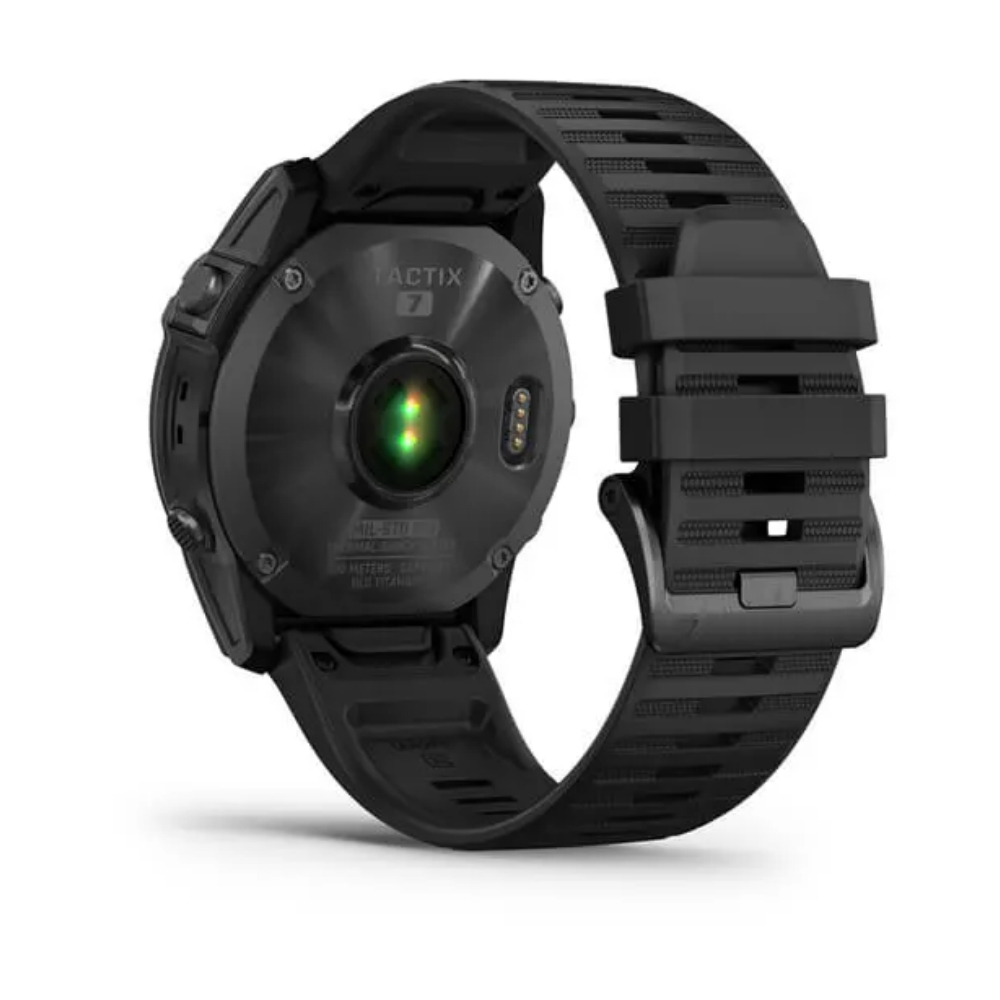 - Tactix 7 – Standard Edition, preto em titânio revestido a DLC com bracelete tática preta em silicone