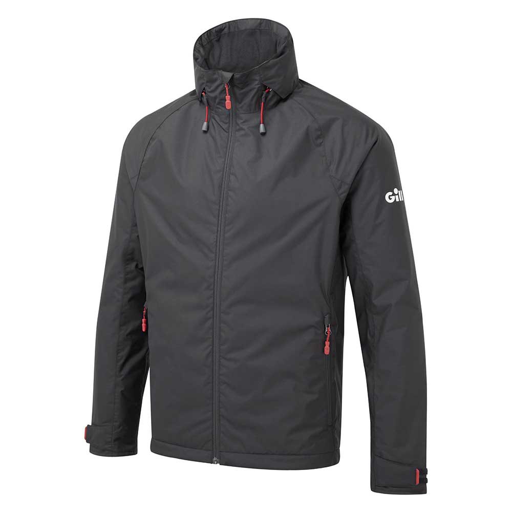 Fecho frontal protegido por um protetor interno contra tempestades para proteção contra o tempo chuvoso.