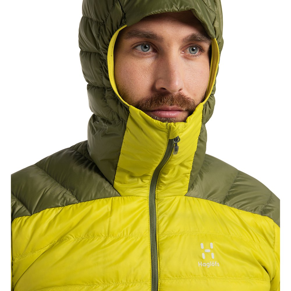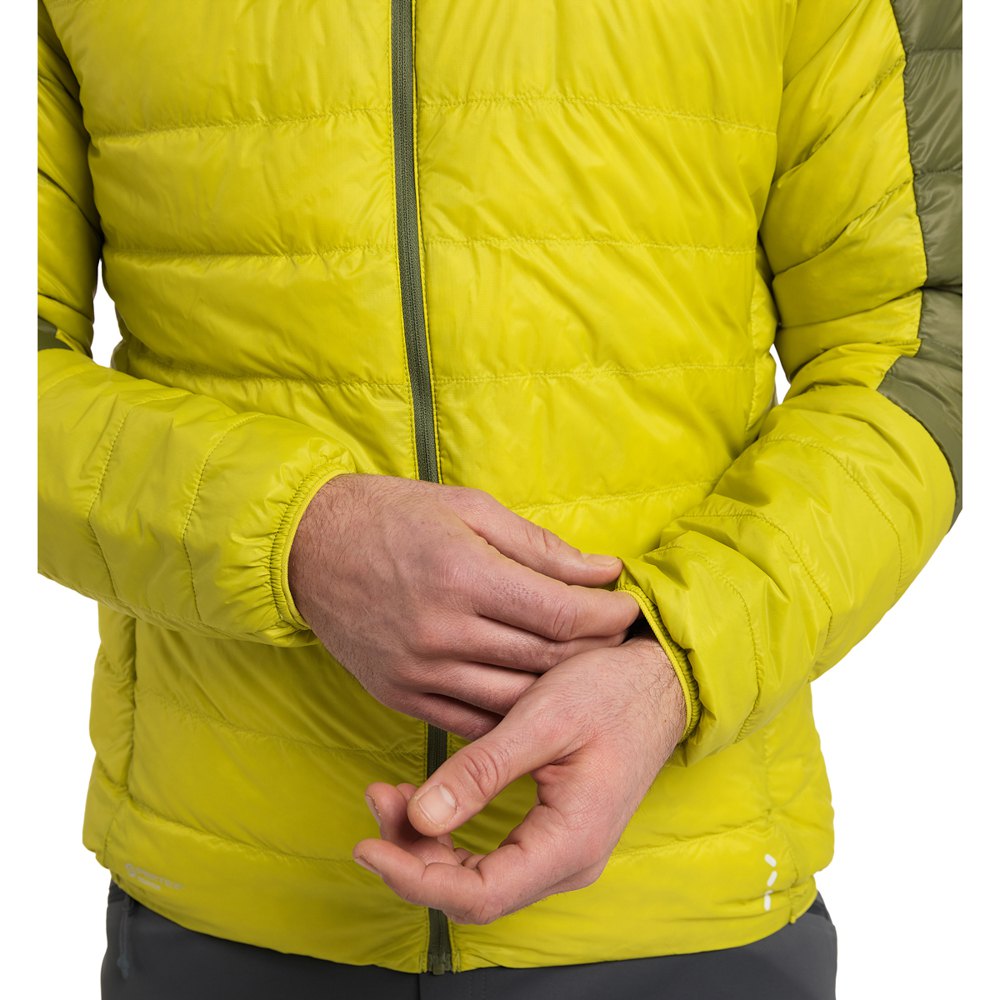 – Pertex® Quantum, 100% Poliamida Reciclada, 10d Down Proof, Super Leve Mini Tecido Ripstop, 28 G/M², Bluesign® Aprovado Haglöfs H Down Platinum 800 Cuin Fillpower Qualidade Superior Goose Down (90% Down/10% Feather). Tratado com Nikwax® para manter o desempenho duradouro mesmo em condições úmidas e acelerar o tempo de secagem. Rastreável. Peso para baixo: 300g