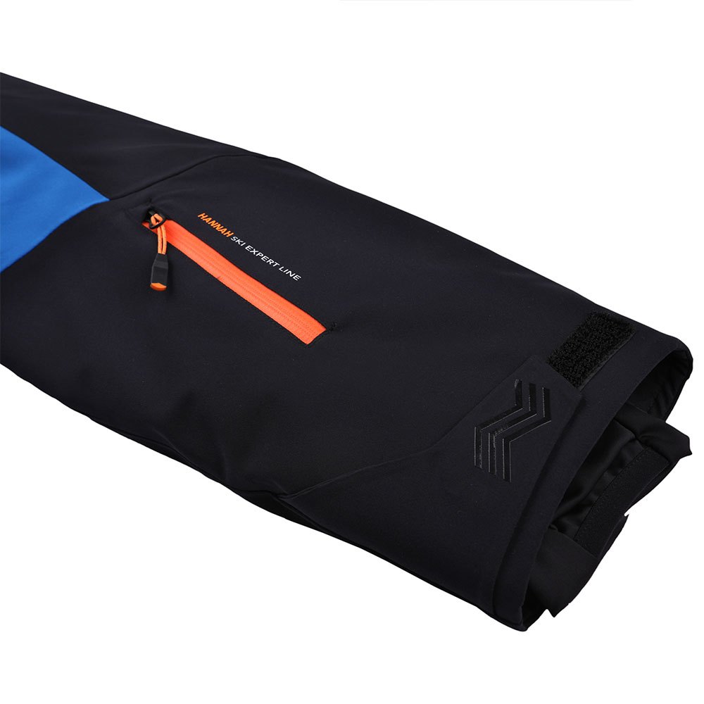 As mangas possuem punhos internos com orifícios para polegar e fechos de velcro.