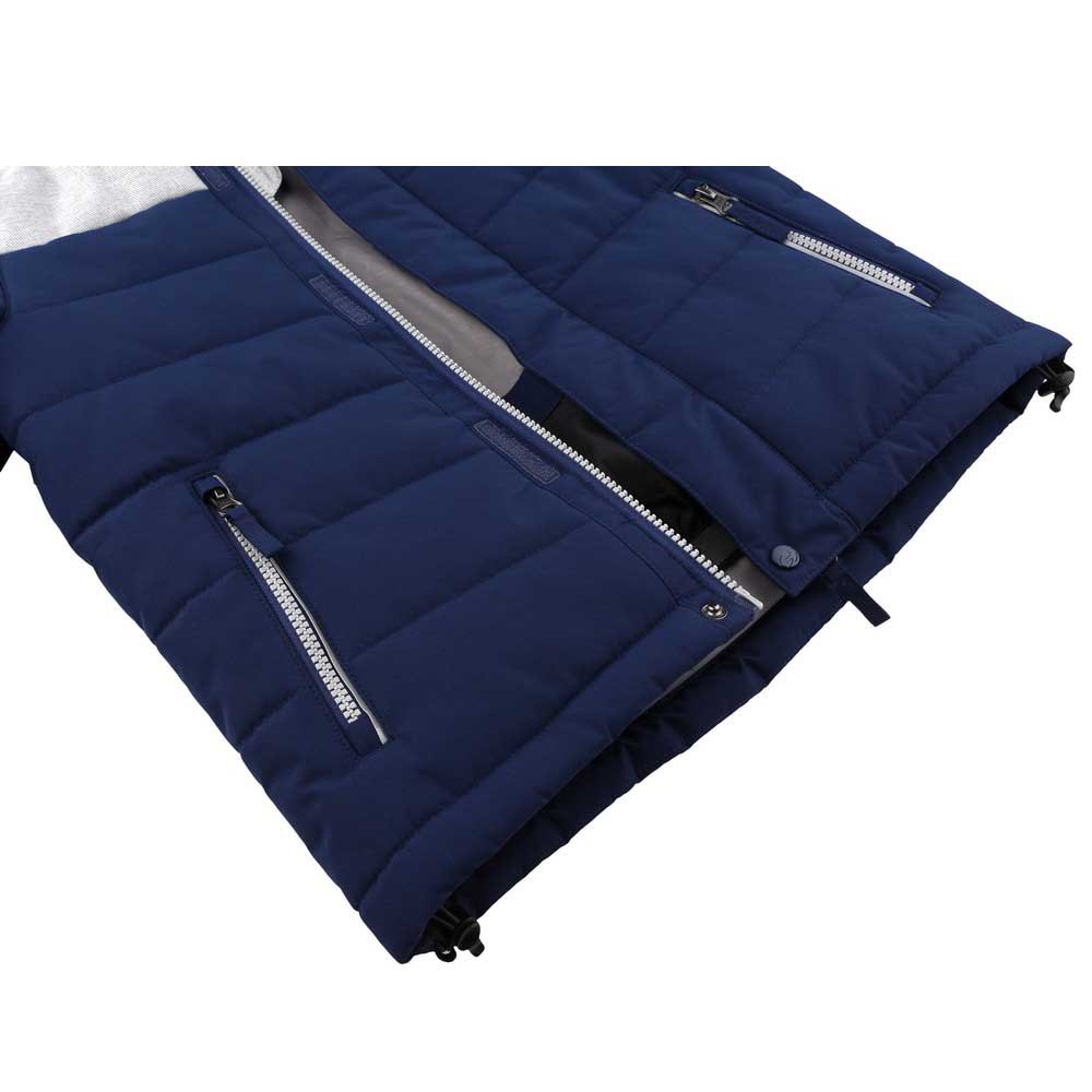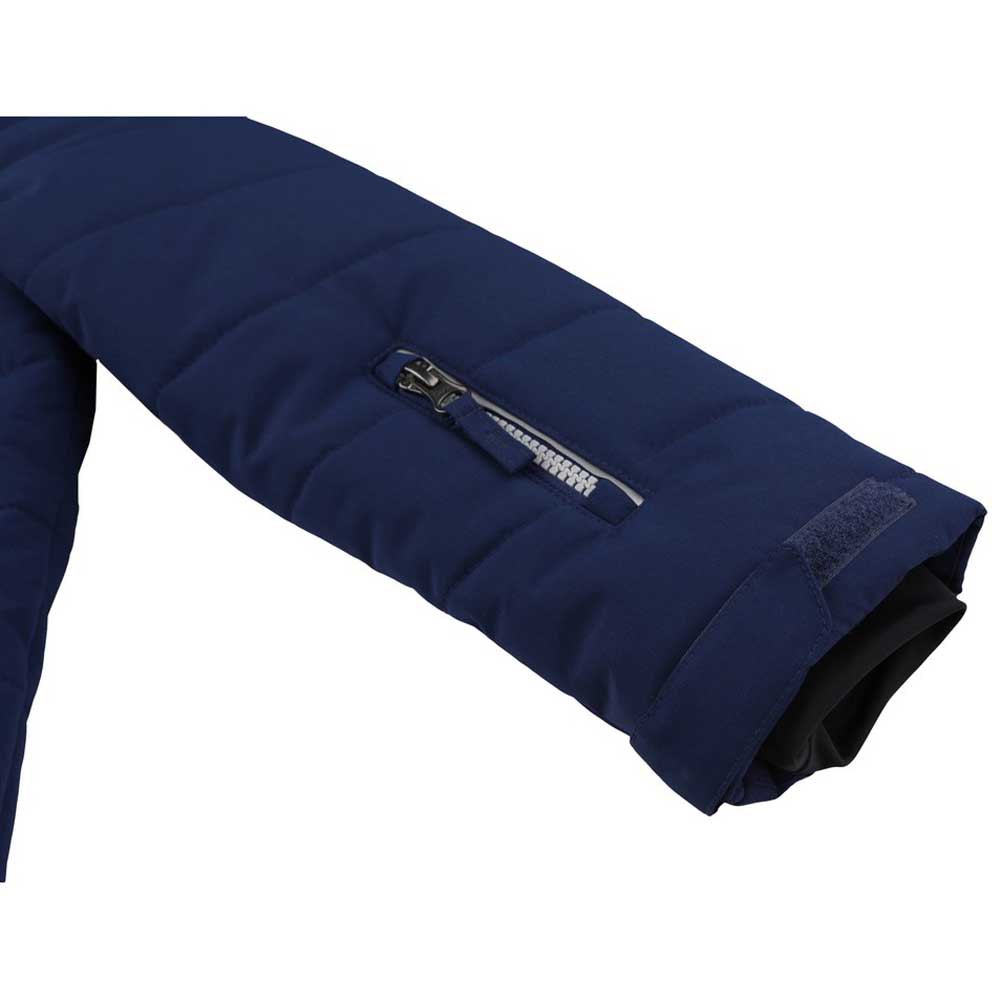 A jaqueta de inverno infantil Kinam Jr II com tratamento à prova d’água é ótima para esquiar, praticar atividades de lazer ou passear pela cidade. A membrana microporosa de poliuretano Resstex 5000 com uma relação equilibrada de impermeabilidade e respirabilidade, juntamente com o revestimento repelente de água DWR, protege você da chuva e da neve. O preenchimento Duratherm High Loft tem excelentes propriedades de isolamento térmico. A jaqueta é leve e macia e se ajusta bem com a borda inferior ajustável. Punhos elásticos para manter as mãos aquecidas e as mangas podem ser ajustadas com velcros no final. A saia de neve na cintura evita que a neve entre. Há um bolso para passes de esqui na manga, dois bolsos principais com zíper nas laterais e um bolso interno. O casaco é moderno e está na moda e graças aos elementos reflexivos, os seus filhos ficarão visíveis mesmo no escuro