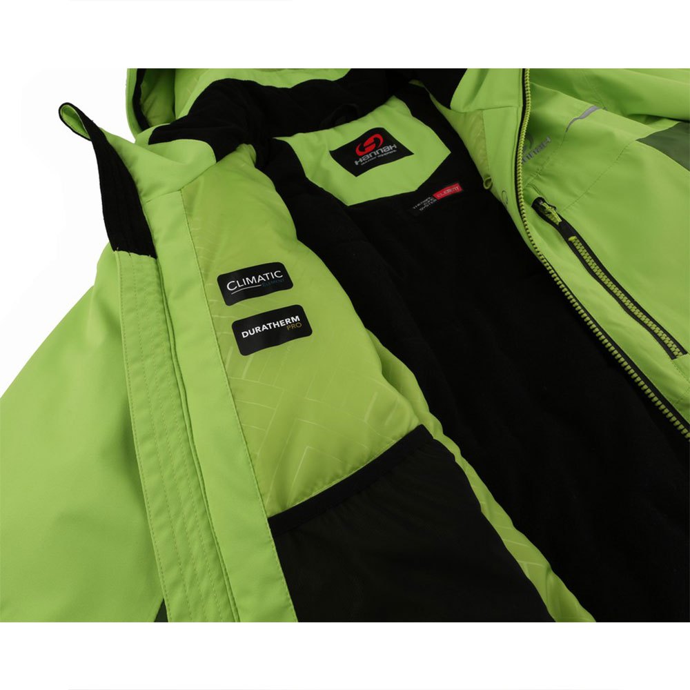 Então, feche com o zíper moldado de plástico de qualidade e saia para a neve! A jaqueta é feita de membrana Climatic Element com coluna d’água de 10.000 mm.