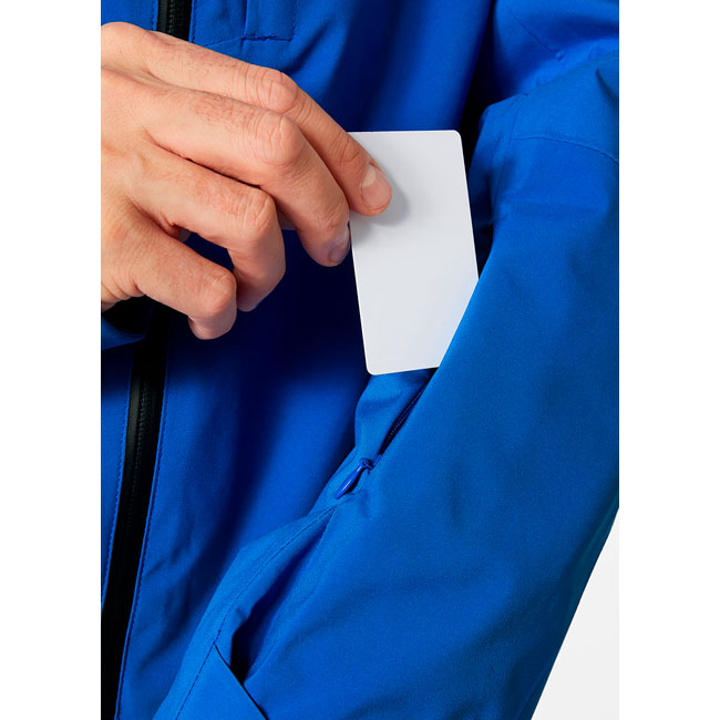 Inclui detalhes adicionais para esquiar, como um capuz compatível com capacete com viseira de alta visibilidade, um bolso para passe de esqui, um Life Pocket™ para preservar a vida útil da bateria do seu celular em ambientes frios e um Transponder RECCO®. Além disso, incorpora punhos e cotovelos extensíveis para facilitar o uso de equipamentos de proteção. A estética inspirada na herança do esqui norueguês alude sutilmente à tradição de esqui do país escandinavo.