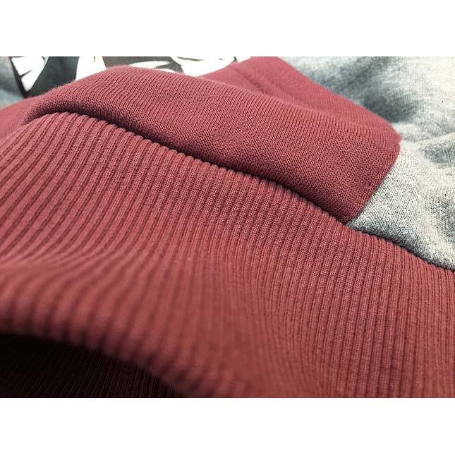 O capô é feito de tecido de camada dupla, para durabilidade tem costura com agulhas duplas e punhos e bainhas com nervuras pesadas; um tecido mais espesso que concede um olhar mais acidentado.