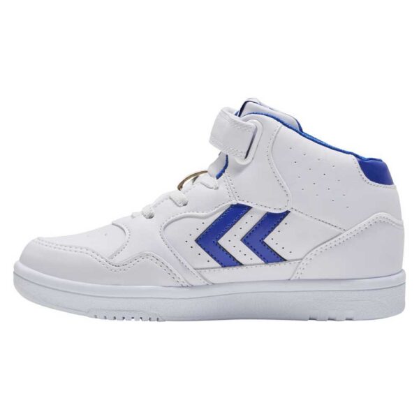 Os CAMDEN HIGH JR são perfeitos para pequenos exploradores que estão sempre em movimento. Estes sapatos hummel® têm uma sola de borracha durável, juntamente com um confortável cabedal de couro sintético. Eles estão disponíveis em um estilo de quadra inspirado em arquivos e cores esportivas clássicas, dando-lhes uma vibração retrô. Os cadarços elásticos e o fecho de velcro facilitam a colocação e a retirada dos pequenos.