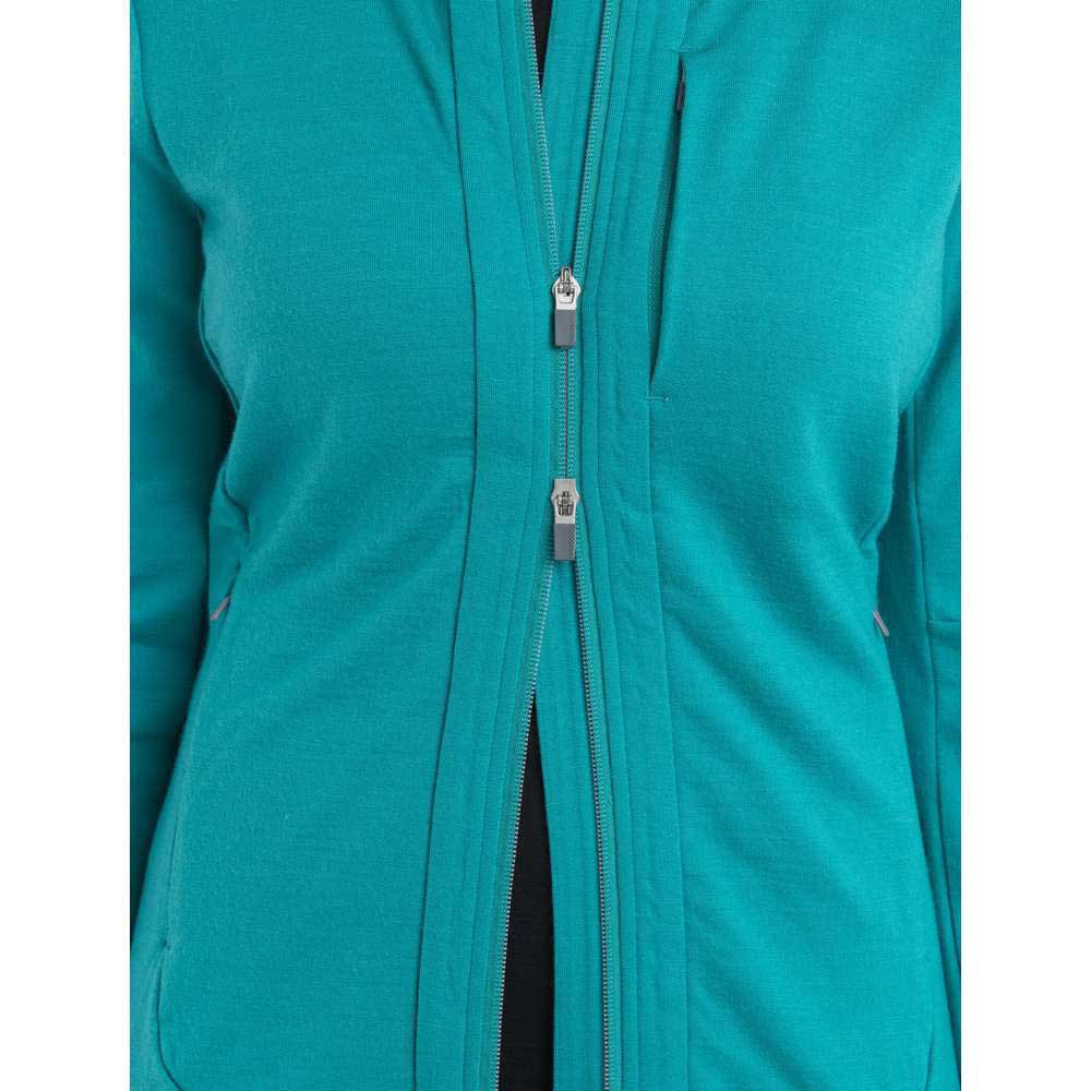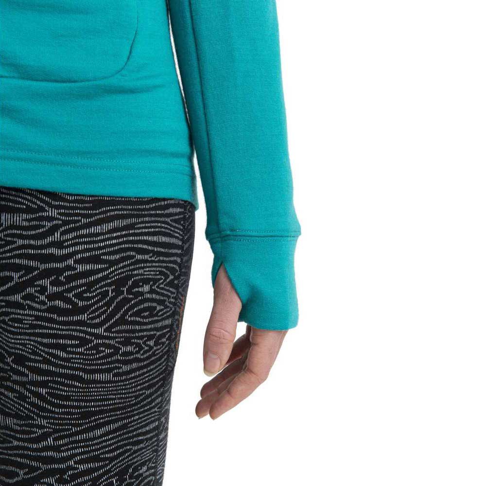 Feito com 100% de lã merino que é naturalmente macia e resistente a odores, o Quantum também possui bolsos com zíper para as mãos e no peito, além de bolsos internos que cabem em um par de luvas.