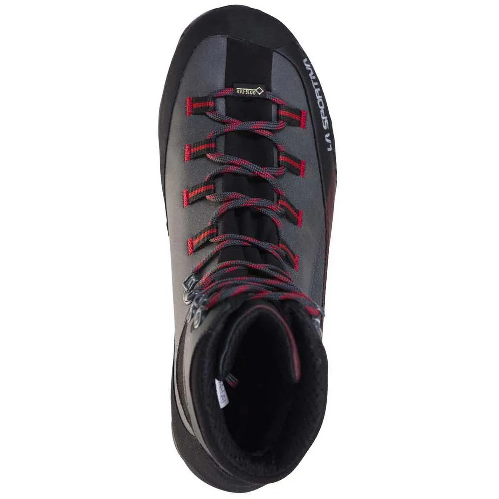 Este modelo distingue-se dos restantes produtos de trekking graças ao inovador couro impermeável Idro Perwanger, mantendo o peso e o volume sob controle. A membrana Gore Tex Performance Comfort garante respirabilidade e impermeabilização, o sistema 3D Flex aplicado ao calcanhar fornece suporte e permite o máximo controle em terrenos íngremes. O sistema de cadarço graduado permite uma perfeita regulagem dos volumes enquanto a sola Vibram com zona de escalada na ponta do pé torna o calçado ideal para via ferratas. O look Trango e a tecnologia La Sportiva combinam para conforto, proteção e segurança na montanha.