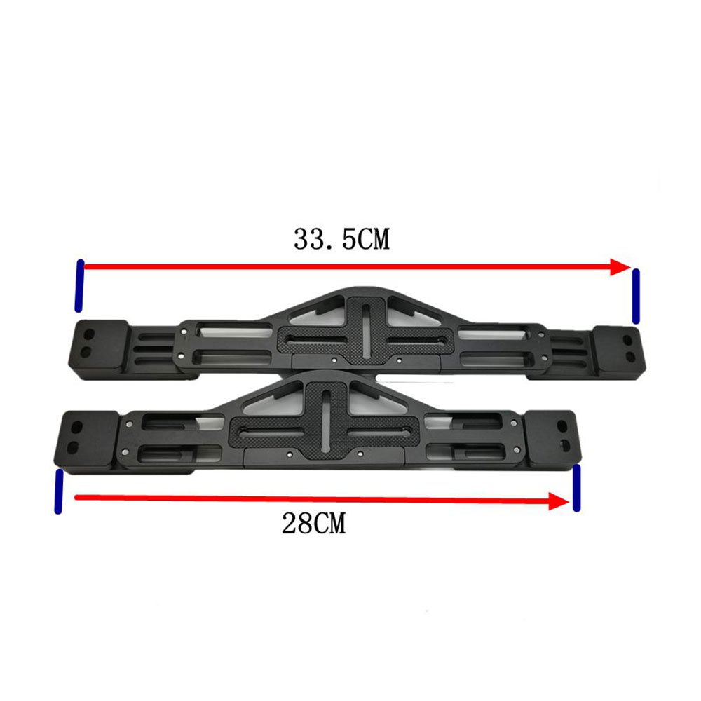 A base vem com 2 parafusos padrão 1/4 20´´ com duas bases ajustáveis que permitem ajustar a distância interior entre as alças, ajustável de 28cm a 33,5cm.